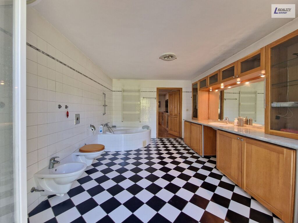 Dispozičně dům nabízí využití v přízemí: vstupní chodba (zádveří), menší koupelna s WC, menší kuchyně s jídelnou, pokoj s ložnicí vč. krb. kamen, prostorný obývací pokoj vč. kuch. koutu (vč. velkých krb. kamen a vstupu do sklepního prostoru 6 m2), velká koupelna (vč. vchodu přímo ven, vč. sprchového koutu, velké galerie a rohové vany s vířivkou)
