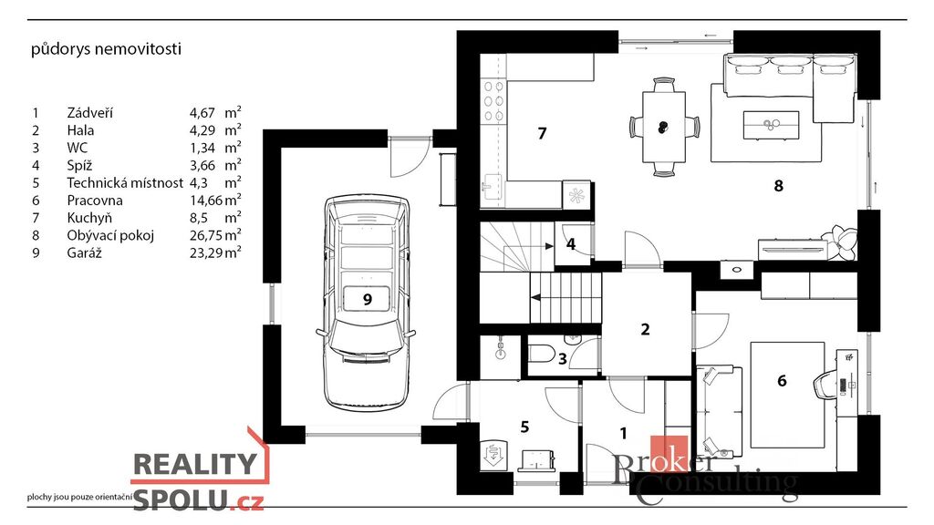 Uvedené výměry jsou orientační. Veškeré zveřejněné údaje obsažené v tomto inzerátu mají pouze informativní charakter a nejsou nabídkou ve smyslu § 1731 nebo § 1732 občanského zákoníku, ani se nejedná o veřejný příslib dle § 1733 občanského zákoníku.