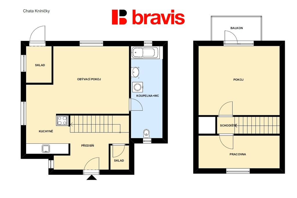 Chata je částečně podsklepená, v 1 NP. se přes chodbu dostaneme do kuchyně, navazuje obývací pokoj a za ním koupelna.
