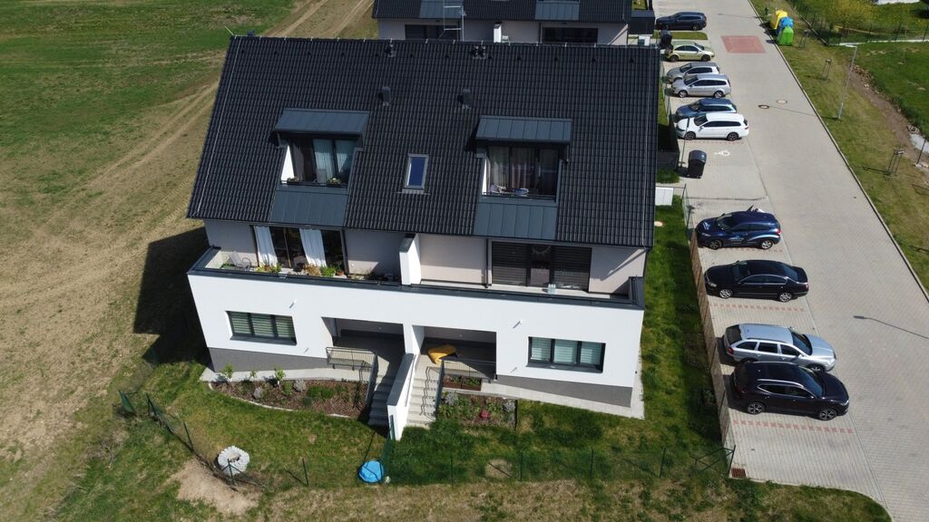 Vytápění bytu je podlahové, podlahové krytiny tvoří vinyl a keramická dlažba (v koupelně a na terase). Dům je vytápěn moderním tepelným čerpadlem s hlubinným vrtem, které zajišťuje také ohřev vody – díky tomu má byt velmi nízké provozní náklady a splňuje energetickou třídu B.