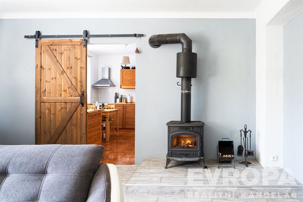 • ústřední topení elektrickým kotlem, měděné potrubí + krbová kamna