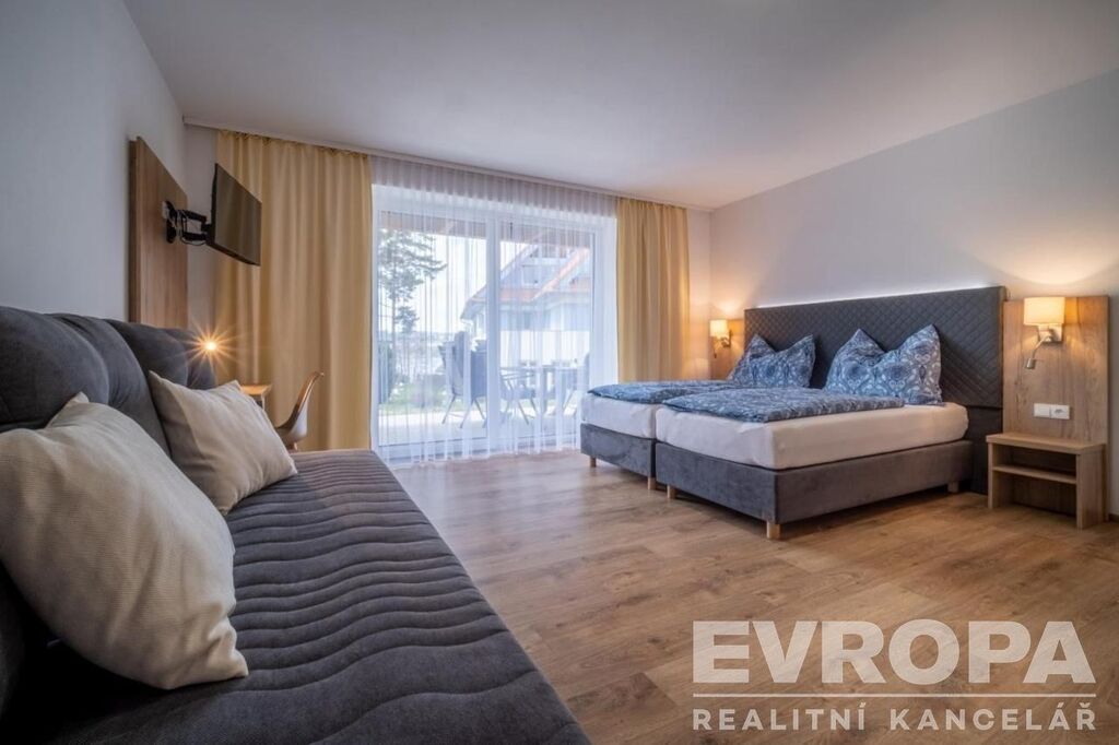 Prodej plně vybaveného bytu apartmánu v Lipně nad Vltavou, dispozice 1+kk, plocha 42m2 + terasa 16,5m2.