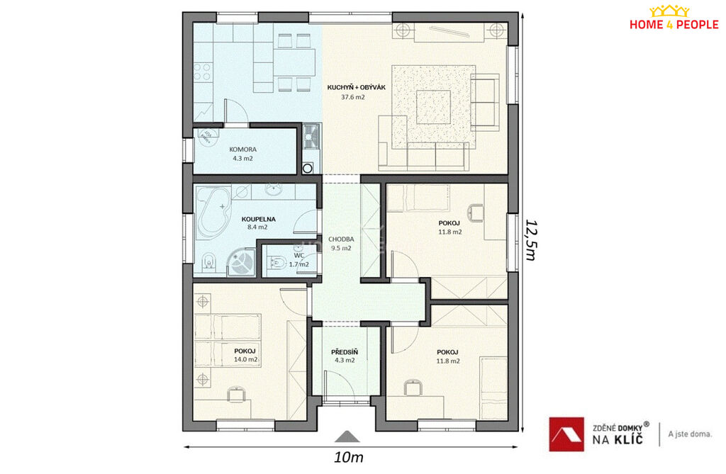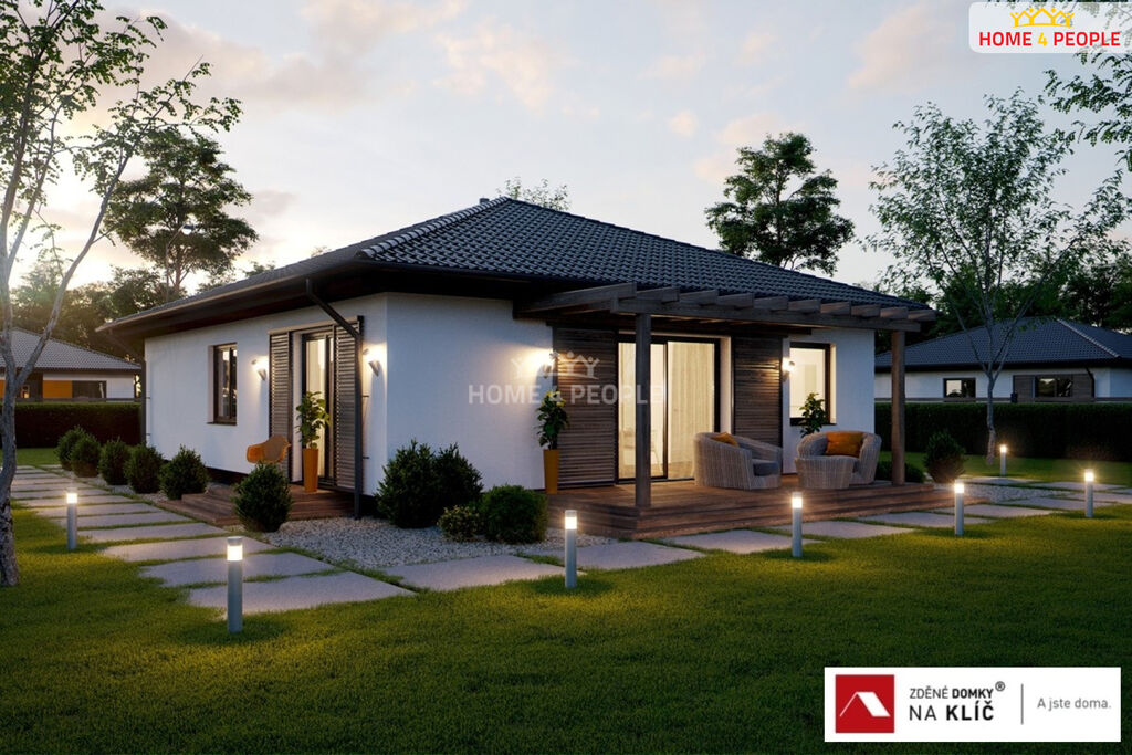 Zprostředkujeme Vám exkluzivní nabídku výstavby rodinného domu typu EKO 104 4+kk v provedení na klíč v obci Machová u Otrokovic. Projekt ekonomického domu zajištuje aktuální potřeby dnešní doby se zastavěnou plochou 125 m² a užitnou plochou 104 m². Jedná se o kvalitní zděnou stavbu z materiálu Porfix 300. Svojí jednoduchou konstrukcí je předurčený pro rychlou a nekomplikovanou výstavbu. Všechny důležité rozvody jsou koncentrované na jednom místě, což snižuje instalační náklady a poruchovost. Optimální půdorys poskytuje výborný poměr mezi velikostí plochy obvodových stěn a vnitřního prostoru. Minimální plocha obvodových stěn takto šetří náklady nejen při výstavbě, ale i při vytápění domu. Ekonomický dům je navrhnutý tak, aby měsíční provozní náklady na tento dům byly přibližně třikrát nižší než u bytu podobné podlahové výměry. Prostředky ušetřené na provozu můžete použít například na splátky hypotéky. Uvedená cena obsahuje základovou desku, projekt, DPH a stavba bude provedena na klíč a předána k okamžitému užívání. Kolaudace je samozřejmostí. (Součástí ceny není kuchyňská linka a světla – dokážeme za zvýhodněných podmínek zajisti přes naše dodavatele). V uvedené ceně můžete počítat také s finálními povrchovými úpravami exteriéru i interiéru, a to včetně elektroinstalací, sanitárního vybavení s bateriemi, interiérovými dveřmi včetně obložek a vytápění bude řešeno teplovodním podlahovým topením v kombinaci tepelného čerpadla se 180L zásobníkem na teplou vodu. Dle dohody změníme systém vytápění nebo vystavíme komín pro krbové kamna nebo pro využití krbové vložky. Kryté garážové stání spojené s domem nebo terasu za příplatek. Pro náročnější klienty máme nabídku nadstandardního vybavení chytré domácnosti, klimatizaci, externí žaluzie, rolety, rekuperaci nebo fotovoltaiku. Úprava dispozice nebo tvaru domu povolena. Délka výstavby od vydání stavebního povolení 12-13 měsíců. Inženýrské sítě v dosahu. Pozemek je rovinatý o výměře 777 m² o rozměrech 24 m široký a 32 m dlouhý je v územním plánu určený pro výstavbu rodinného bydlení a jeho poloha je situována mezi rod. domy. Více u makléře a to včetně dohodnutí se na prohlídce. Také nabízíme možnost si projít naše hotové domy. Změna za jiný dům je možná. Doporučuji Ev. číslo: 31863.