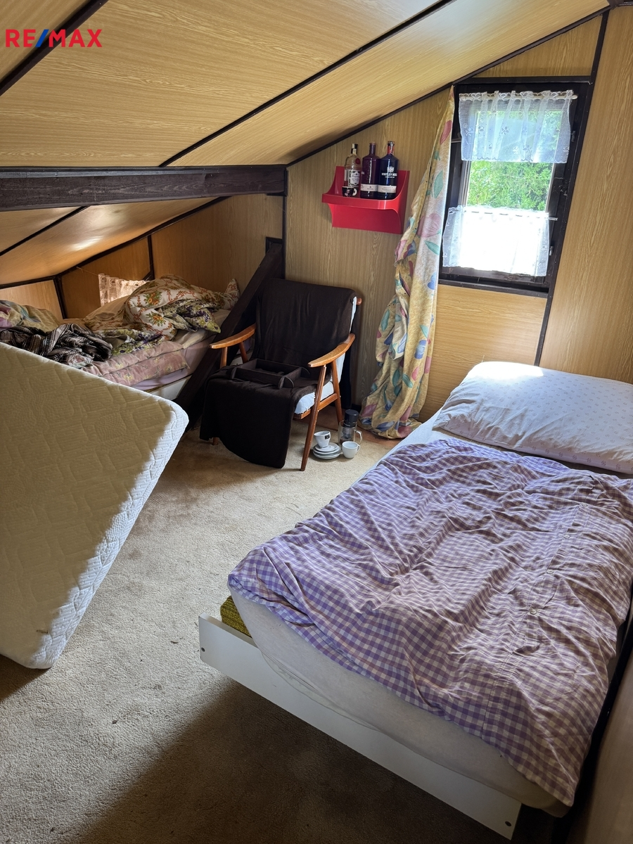 V 1.NP je vstupní chodba a hlavní obytný prostor propojený s kuchyní. V patře jsou dvě samostatné ložnice a úložný prostor.