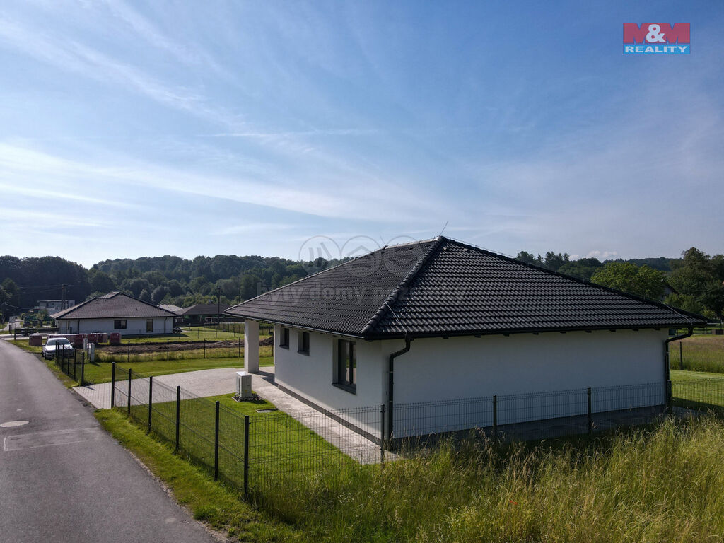 Prodej novostavby rodinného typu bungalov s dispozicí 4+kk v klidné části obce Horní Datyně. Dům je již připraven k nastěhování - zbývá pouze kuchyňská linka, která je již na výběru nového majitele a není součástí kupní ceny. Součástí domu je také kompletní oplocení včetně vjezdové brány a branky. Vytápění řešeno úsporným tepelným čerpadlem vzduch / voda, což zajišťuje nízké náklady na vytápění a ohřev teplé vody. Jedná se o kvalitní cihlový dům v příjemné části obce s prostornou zahradou o výměře 873m2. Před domem 2 parkovací místa s možností zvětšení či přístavby garáže. U tohoto domu je možnost odpočtu DPH. Cena včetně DPH. V okolí výborná dostupnost služeb i do centra města. Více informací a prohlídka u makléře.
