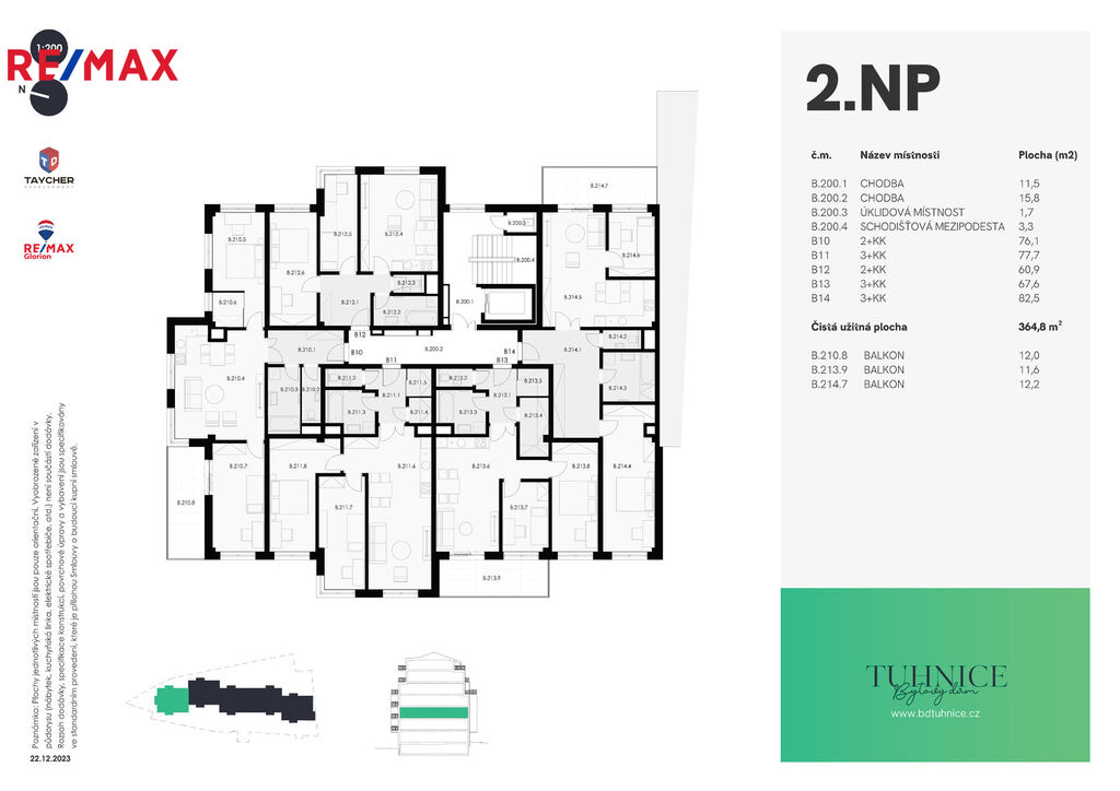 V bytovém domě budou bytové jednotky od 1+KK až po 4+KK a mezonetové byty 3+KK.Každý byt bude mít k dispozici sklep.