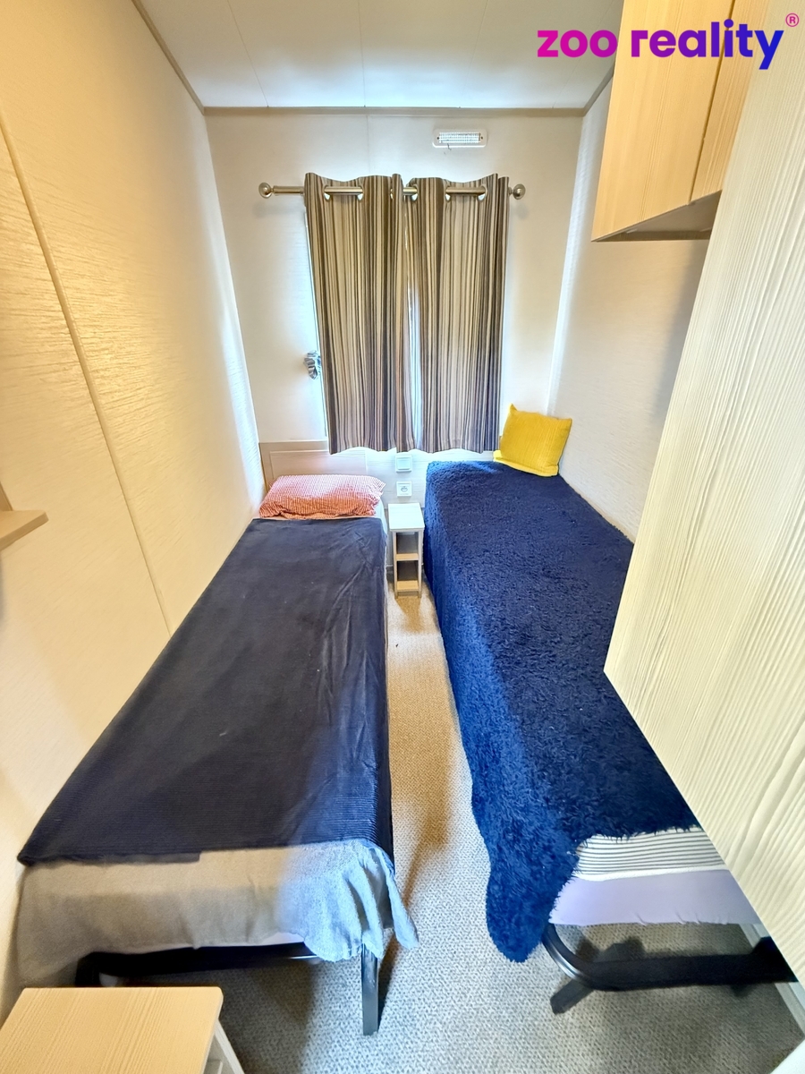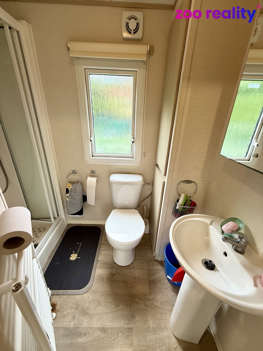 Obývací pokoj s kuchyňkou a technickou místností, dvě ložnice, koupelna se sprchovým koutem, umyvadlem a toaletou.