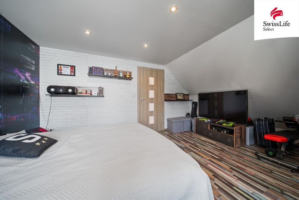 V podkroví jsou tři samostatné ložnice, ideální pro rodinu s dětmi.