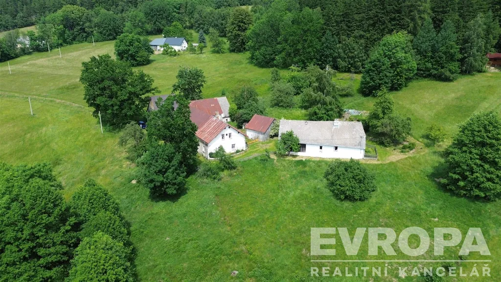 Jedná se o prodej dvou chalup s přilehlou zemědělskou stavbou a stodolou. Hlavní užitný prostor nalezneme v jedné částečně zrekonstruované chalupě, která je k plnohodnotnému užívání. Ostatní stavení jsou vhodné spíše k rekonstrukci.