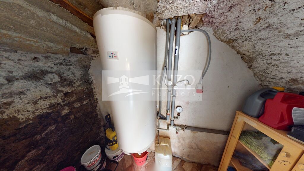Přízemí: Praktické uspořádání zahrnuje sklad, šatnu a technickou místnost s elektrickým bojlerem. Z vnější strany domu je přístupná kotelna s kotlem na tuhá paliva (uhlí) a elektrokotlem, doplněná bojlerem pro kotel.