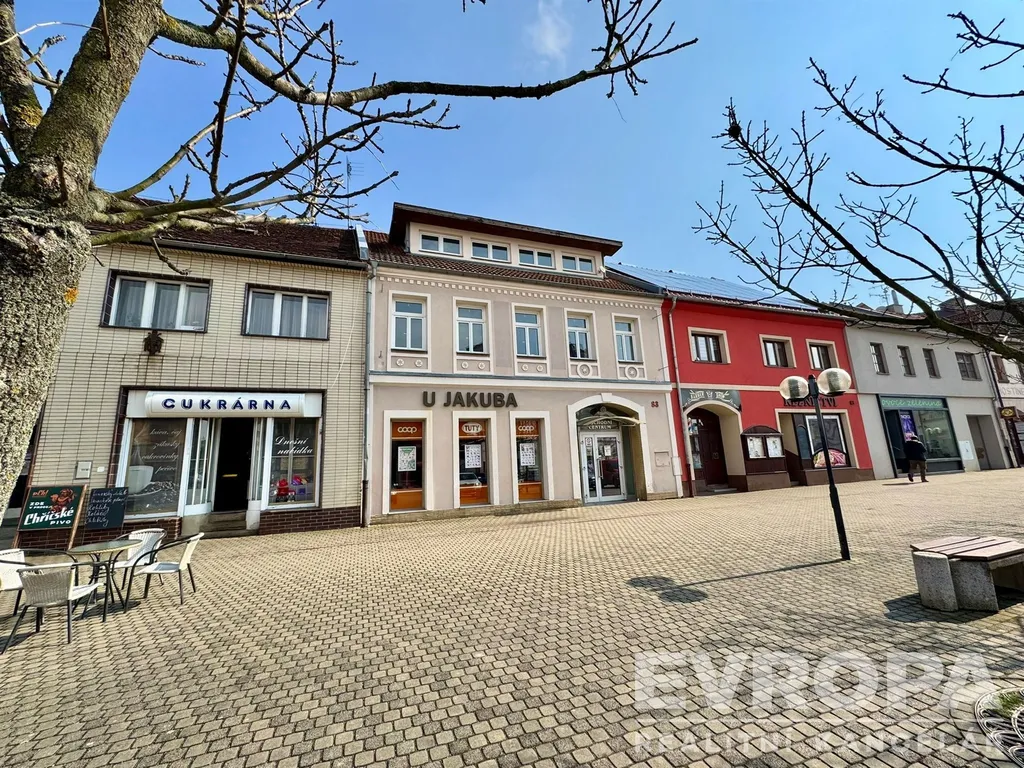Nabízíme pronájem kanceláře 54m2 ve 3.NP cihlové domu v centru Kralovic na náměstí Osvobození.