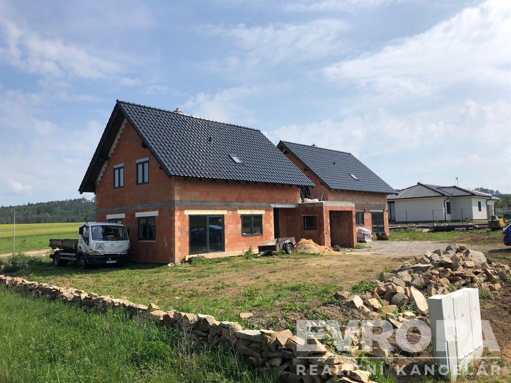 Nemovitost se prodává jako uzavřená hrubá stavba viz fotografie. V tomto domě je již hotové schodiště a v 2.NP jsou hotové sádrokartonové podhledy, zateplené stropy, a hotová dispozice. Možnost dokončení na klíč dle vlastních představ s využitím veškerých moderních technologií. Umístění domů v obci Čižice nabízí úžasné panoramatické výhledy.