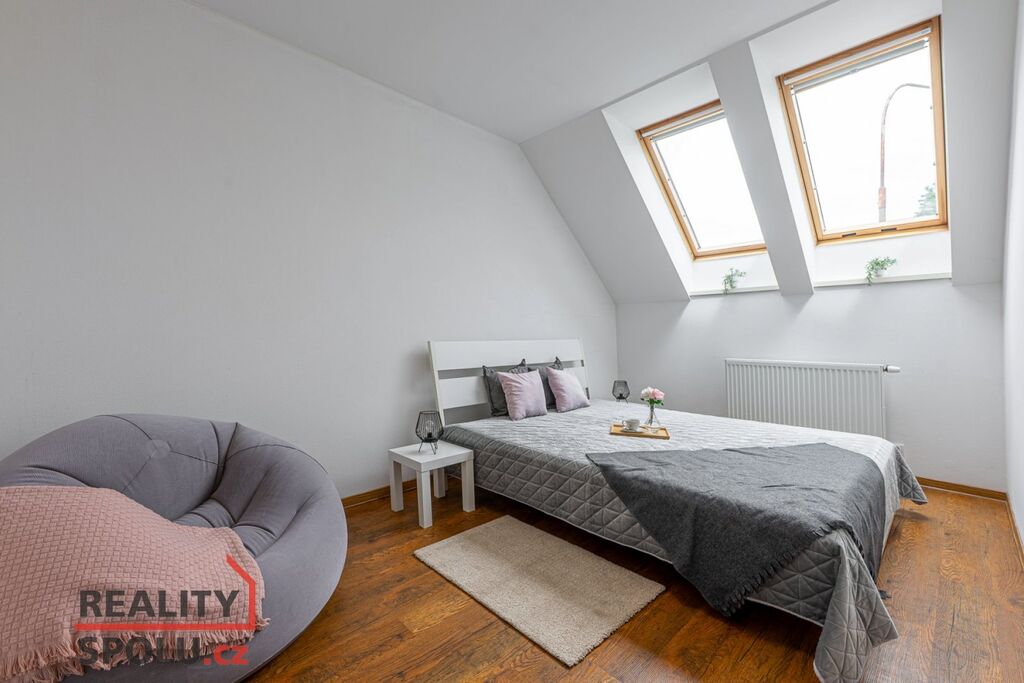 3. podlaží (ložnicové) nabízí tři samostatné a velmi prostorné pokoje, včetně hlavní ložnice o velikosti přes 21 m², a třetí, největší koupelnu vybavenou rohovou vanou, umyvadlem, WC a bidetem. Z oken této části je krásný výhled do okolní zeleně. Součástí domu je také velkorysý půdní prostor, který lze využít nejen jako úložné zázemí, ale nabízí i možnost budoucího rozšíření – například o ateliér, domácí pracovnu nebo další obytnou místnost.