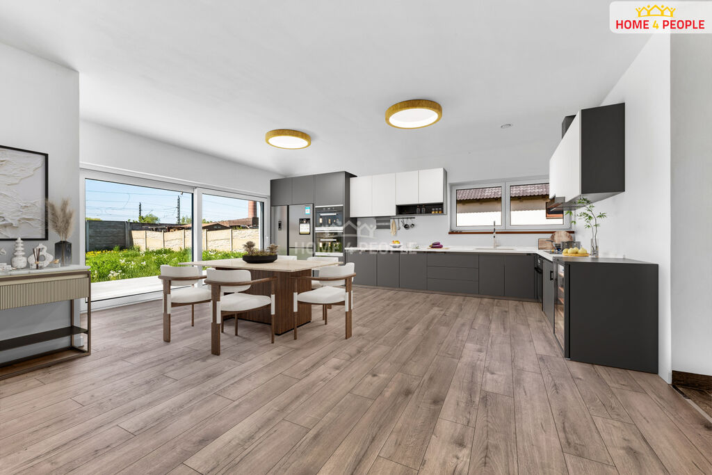 Dům je postavený z tvárnic 300 mm se zateplením polystyrenem grafitovým EPS 160mm, díky čemuž má nadstandardní tepelné izolační vlastnosti, okna jsou protihlukové opatřená venkovními žaluziemi. Nemovitost je napojena na vodovodní řád, elektřinu, a kanalizaci, má projekt na vlastní studnu. Vytápění je podlahové ,rekuperace, obložkové interiérové dveře.