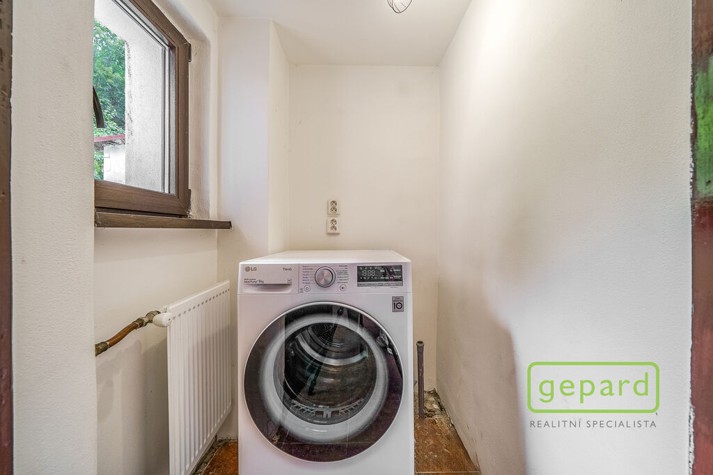 Spodní podlaží nyní slouží jako prostorná garáž a technické zázemí, ale díky své velikosti nabízí možnost vybudování dalšího obytného prostoru, dílny, kanceláře či ateliéru – záleží jen na vašich představách.