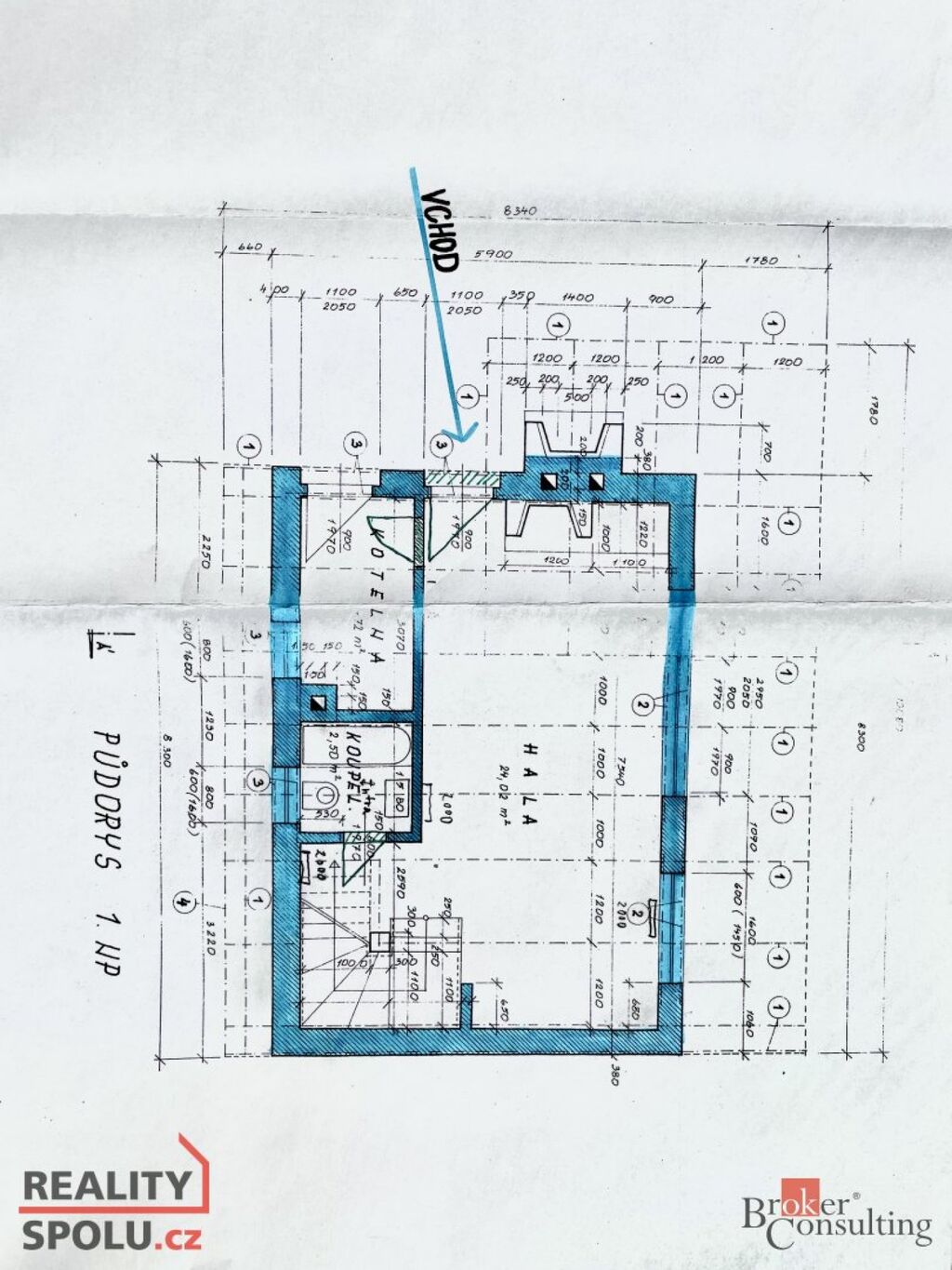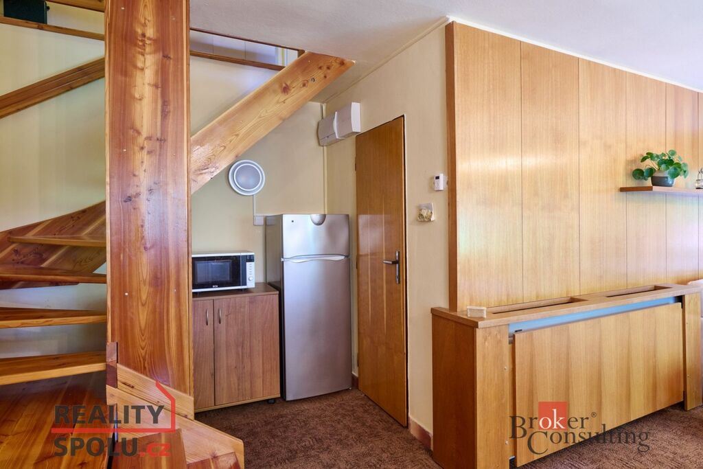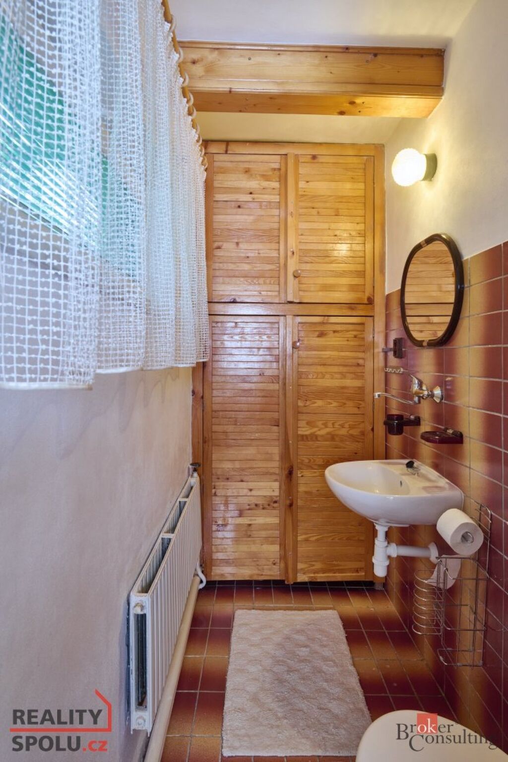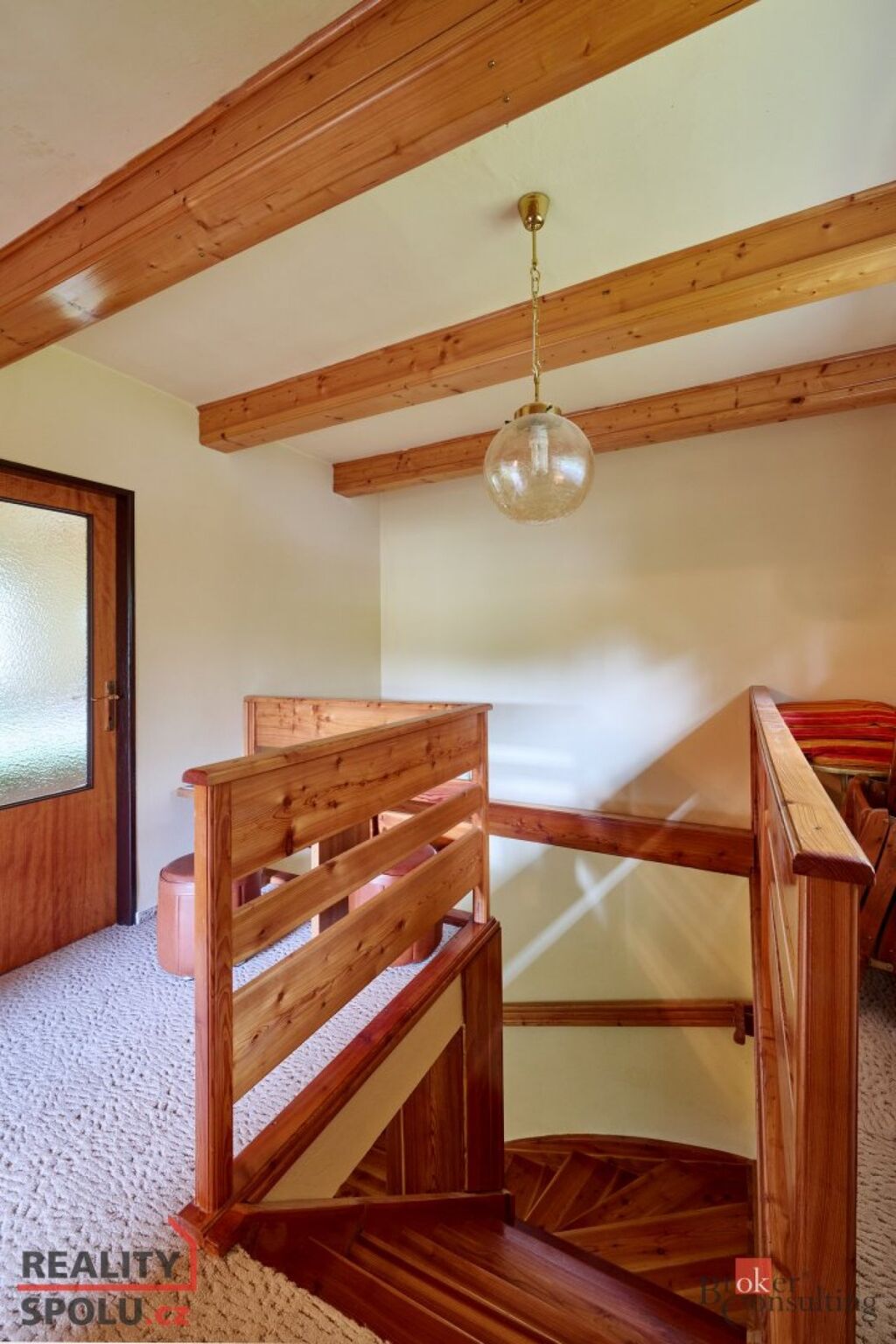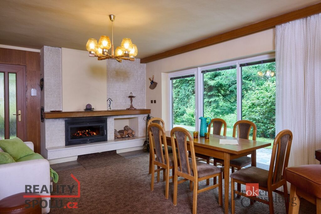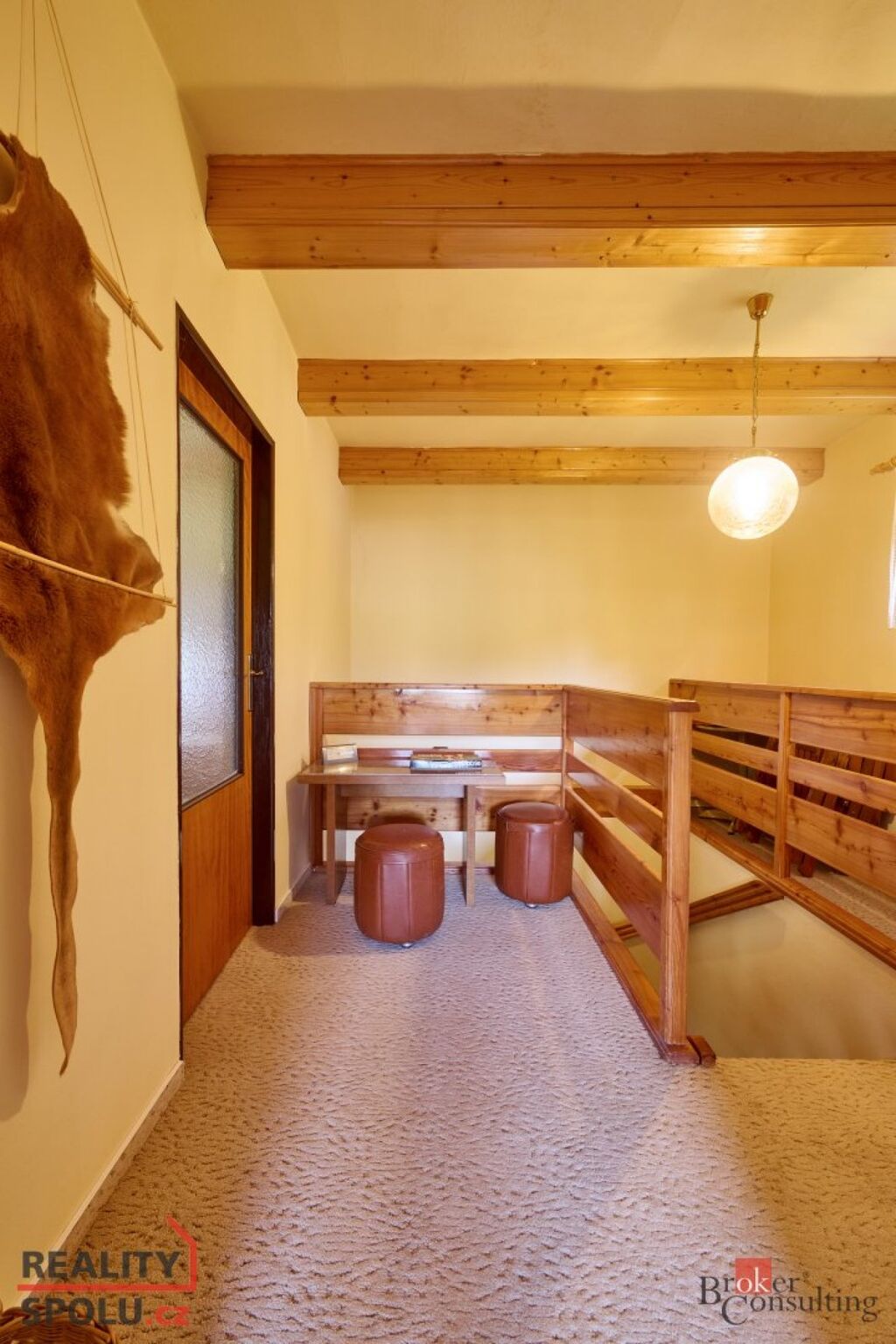 • Přízemí: prostorný obývací pokoj s krbem a kuchyňským koutem, koupelna s vanou a WC, technická místnost