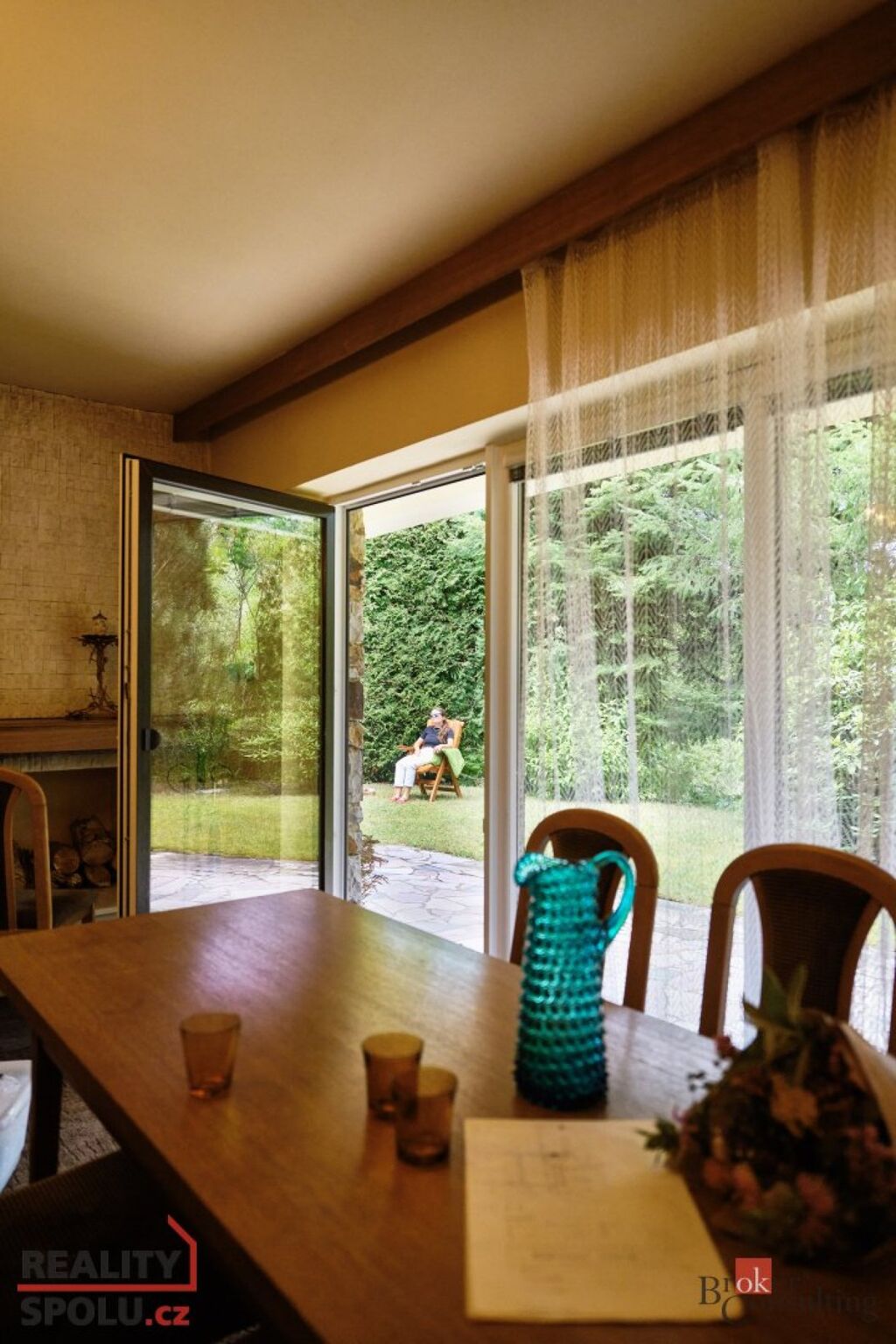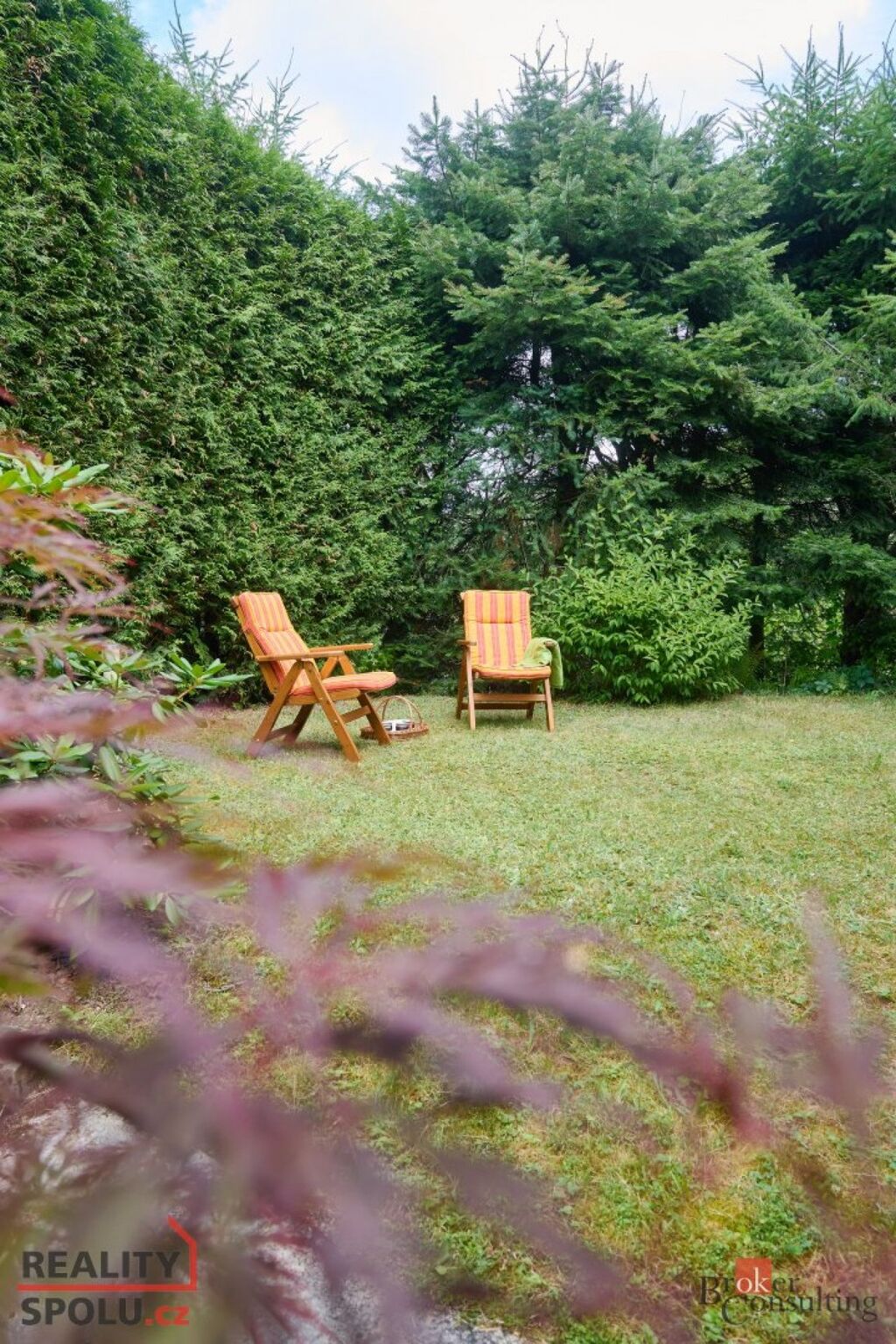 • Pozemek: 742 m² udržované zahrady se vzrostlými stromy, venkovní posezení s krbem, pergola, dvě zděné sklepní místnosti, parkování pro více aut.
