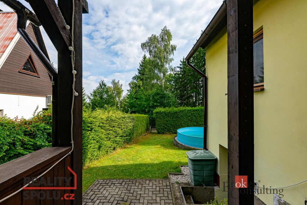 Na pozemku o velikosti 351 m² je vybudována venkovní terasa s posezením a bazén, kde si můžete užívat léto v naprostém soukromí. Zahrada je nenáročná na údržbu a nabízí dostatek prostoru pro odpočinek, grilování nebo malé zahradničení.