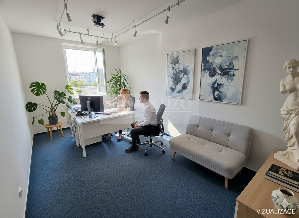 Měsíční nájemné (vč. úklidu spol. prostor): 29 000 Kč