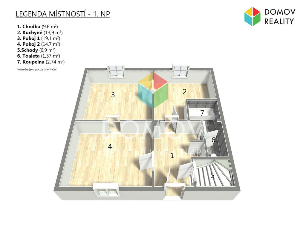 • Dispozice: 1 NP cca 68 m², 2 NP cca 71 m2 , podkroví cca 83 m2