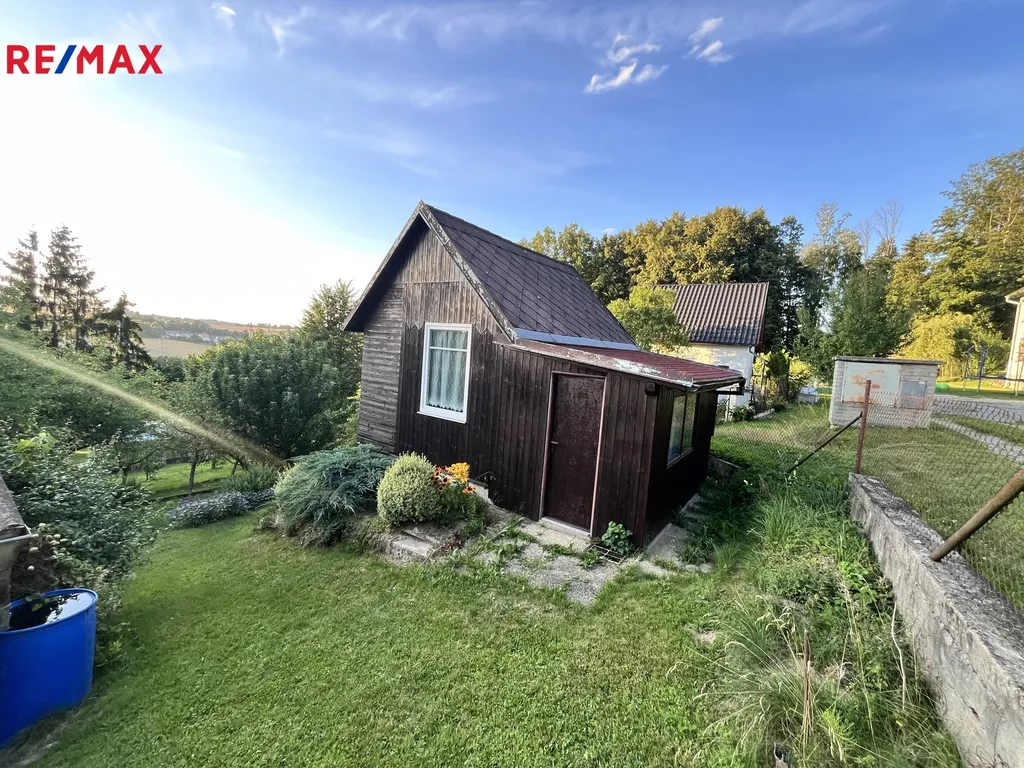 Jedná se o prodej chaty na vlastním pozemku o celkové výměře 391m2 s chatkou tvořenou vstupním pokojem, spojovací chodbu, WC a hlavním pokojem v lokalitě pod sv. Annou na okraji Pelhřimova. Část chaty o ploše cca 15m2 je podsklepená. Vedle chaty se nachází zahradní domek na nářadí o ploše cca 5m2. Vodovod je koloniální v rámci zahradkářské kolonie, elektřina vlastní 230V. Pro více informací volejte makléře nabídky.