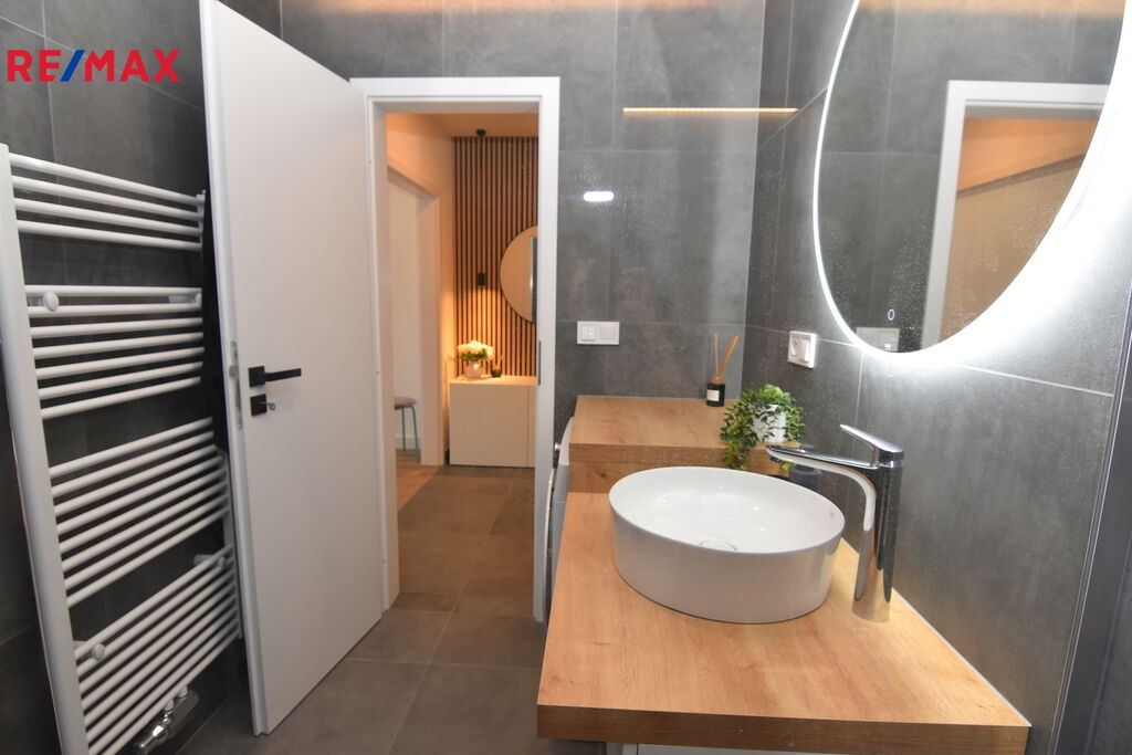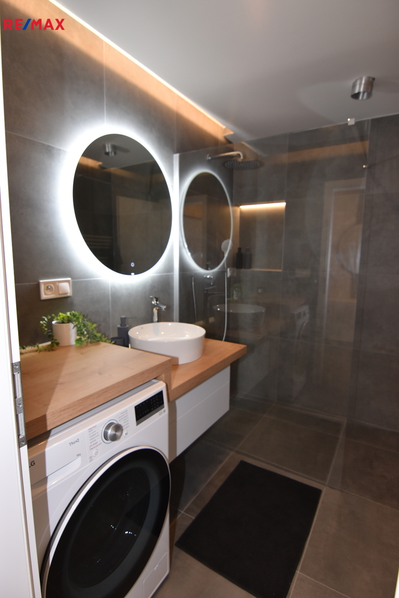 Podlahová krytina vinyl, okna plastová + sítě proti hmyzu, topení dálkové, terasa 10,5 m2.