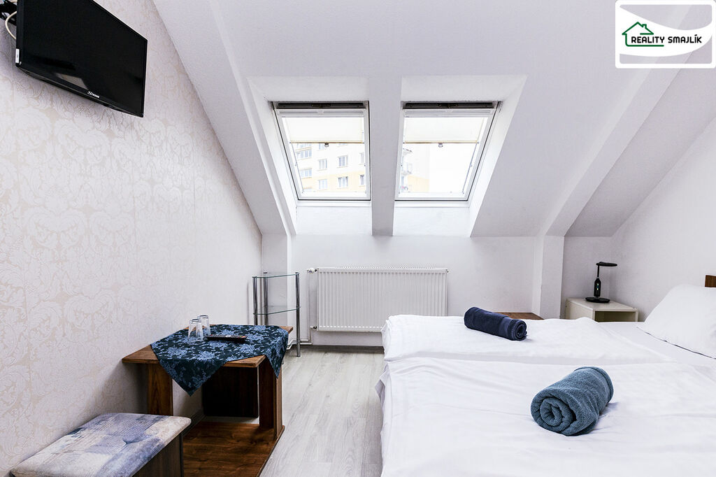 Hledáte pronájem zařízené garsoniéry vč. internetového připojení, úklidové služby? Hledáte bydlení bez starostí a nákupu nábytku? Nabízíme k pronájmu zařízený pokoj hotelového typu ve 3. patře cihlového domu v Chebu. Pokoj je kompletně zařízený včetně televize, má samostatnou koupelnu a společnou kuchyňku ještě s jednou garsoniérou. Cena je 8500 Kč na 1 osobu na měsíc. Jedná se o dvoulůžkový pokoj a prostorný čtyřlůžkový pokoj. Pokud bude chtít bydlet jeden člověk na dvoulůžkovém pokoji, platba bude 12.000 Kč. Pokud budou chtít bydlet na čtyřlůžkovém pokoji pouze dva lidé, platba bude 17.000 Kč. Majitel si vyhrazuje právo výběru nájemce. Tento pokoj nabízíme k dlouhodobému pronájmu. Vratná jistota (kauce) ve výši 12.000 Kč. V ceně se jsou již započítané zálohy topení, na studenou a teplou vodu, elektřinu, internet, 1x měsíčně výměna povlečení, popř. možno zajistit další služby. Vhodné pro bezdětný pár. Vše čisté; bez dalších nákladů a starostí. Bližší informace v RK. K dispozici ihned.