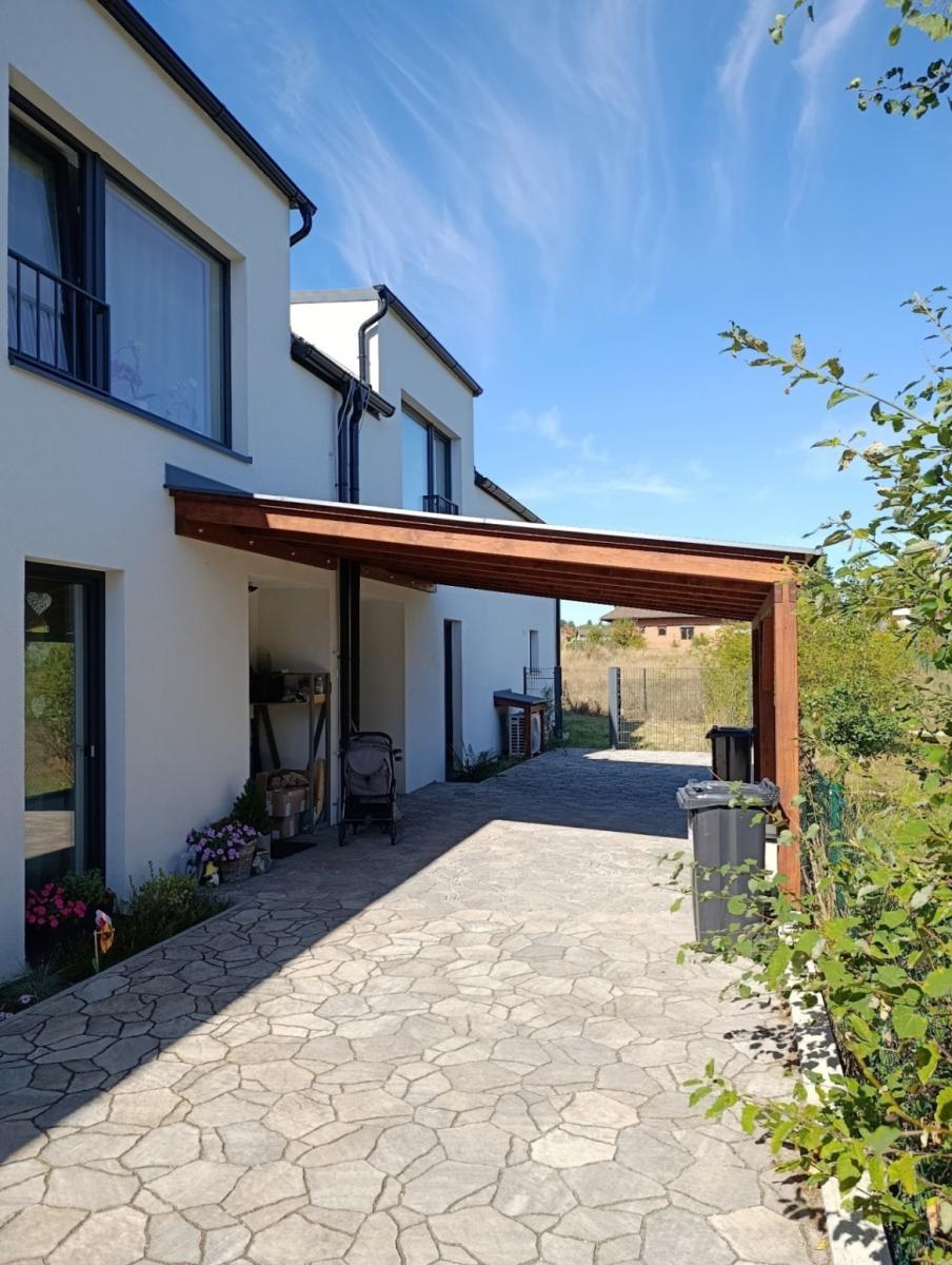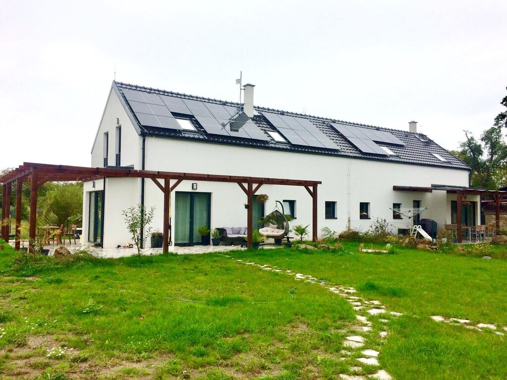 Energeticky úsporný dvojdům v klidné části obce na zcela rovinatém pozemku byl zkolaudován v roce 2023 a je rozdělen na dvě samostatné části, které budou vymezeny jako bytové jednotky, každá s vlastní zahradou. Předmětem této nabídky je prodej samostatné jednotky o zastavěné ploše 89 m2 a se zahradou o výměře cca 600 m2. Přesná výměra zahrady a zpevněných ploch společných pro obě jednotky budou před prodejem upřesněny podle prohlášení vlastníka budovy a jeho zápisu do katastru nemovitostí.