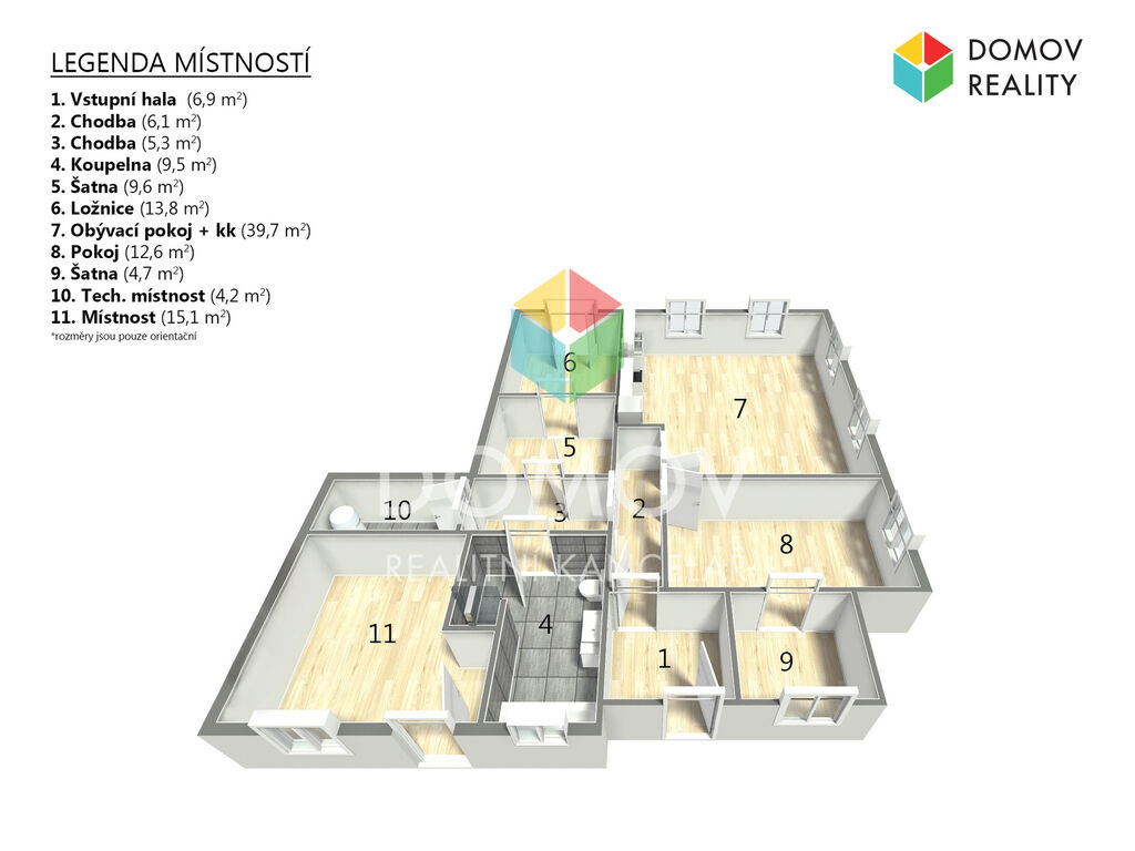Bytová jednotka nabízí velkorysé dispoziční řešení 4+kk, s kvalitní podlahovou úpravou – celoplošná anhydritová stěrka s položenou laminátovou plovoucí podlahou. Vytápění je řešeno ústředním topením napojeným na kotel na tuhá paliva, umístěný v samostatné technické místnosti (15,1 m²) se vstupem zvenku. Druhá technická místnost (4,2 m²) slouží jako zázemí s elektrickým bojlerem a je zde také umístěn vlastní změkčovač vody.