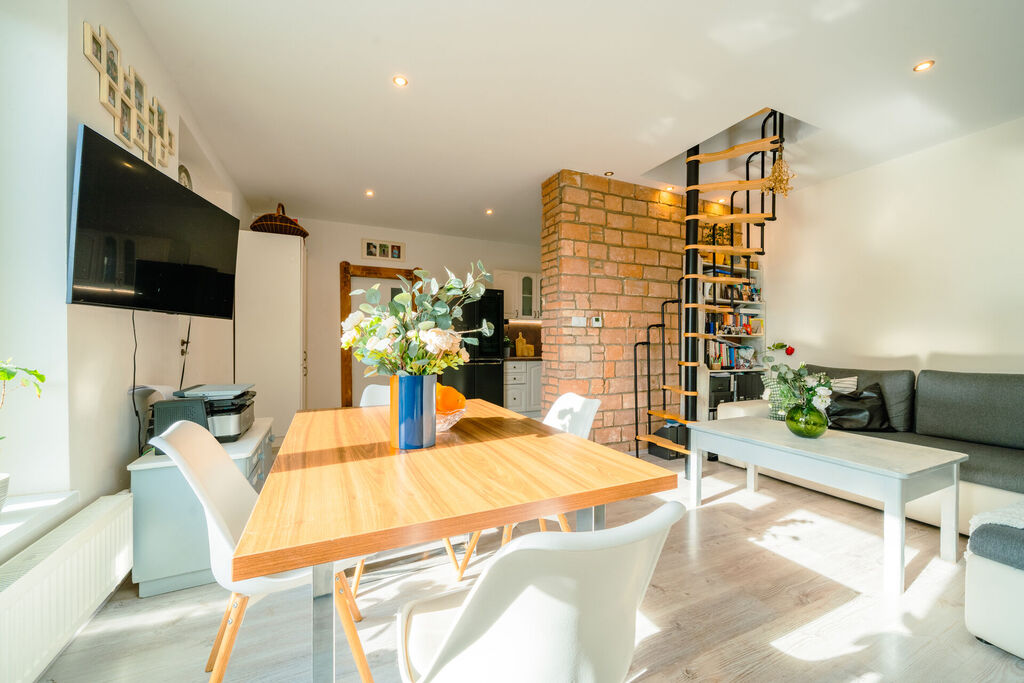 Hledáte útulné bydlení v blízkosti Prahy, které bude poskytovat klidné zázemí pro Vaši rodinu? Nabízíme Vám ke koupi rodinný dům 4kk s terasou, zahradou a krásným výhledem do okolí v obci Máslovice, okr. Praha východ. Dům má velmi praktické dispozice o celkové ploše kolem 100 m2 a pozemkem 395 m2. V přízemí domu je obývací prostor s jídelnou, který je propojený s kuchyňským koutem. Ten je vybaven kuchyňskou linkou se spotřebiči (varná deska, trouba, myčka nádobí, mikrovlnná trouba). Dále je zde ložnice, koupelna s vanou a toaletou, vstupní chodba. V podkroví domu jsou dva samostatné pokoje. Dům prošel v nedávné době vnitřní rekonstrukcí, během které bylo vybudované nové plynové topení (kotel Buderus), nové rozvody elektřiny, vody, podlahové krytiny, okna, dveře, obytné místnosti v podkroví domu, izolace střechy foukaným polystyrenem, nový septik. Před domem je k dispozici terasa, mírně svažitá zahrada a dva velmi prostorné sklepy s rozlohou cca 50 m2 a především prostor na vybudování parkovacího místa. Dům nyní není zateplený, bez nové fasády, energetický štítek se nyní připravuje, uvedena je tedy hodnota G. V tuto chvíli je dům připojen na elektřinu, zaveden plyn, vodovod, kanalizace v přípravě, septik. Obec Máslovice se nachází pouhých 7 km severně od okraje Prahy a je součástí přírodního parku Dolní Povltaví, což skýtá možnost využití krásného přírodního bohatství a klidného bydlení. Pokud zmiňujeme obec Máslovice, tak musí zaznít, že je zde velmi oblíbené pekařství a nově vznikající bistro. Kompletní zázemí a občanská vybavenost je v blízké obci Klecany. Autobus jede přímý až k metru Kobylisy. Pro bližší informace mě kontaktujte a rádi vám umožníme osobní prohlídku domu.