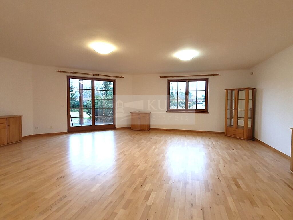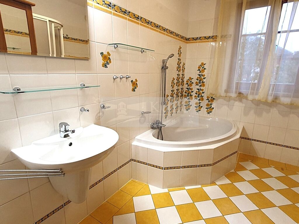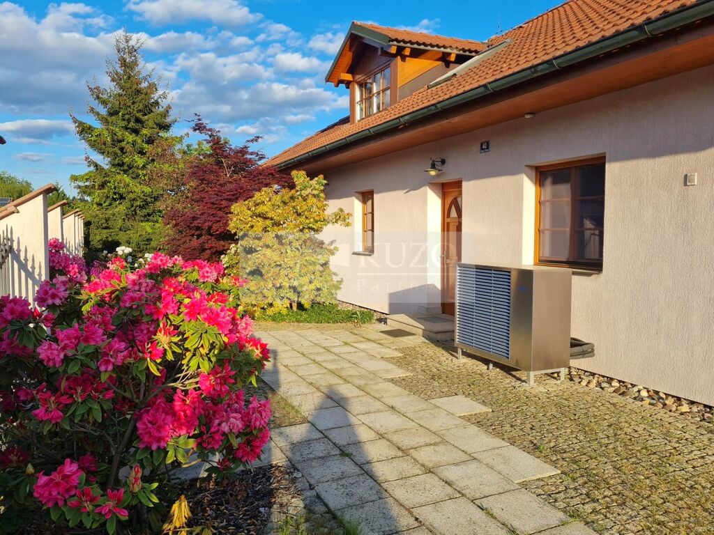 Prostorný dům stojí na velkorysém pozemku 1150 m2. Je samostatný, dvoupodlažní, o dispozici 6+kk, velikosti cca 252,5 m2 + terasa + garáž 33 m2. Nachází se v klidné části obce Kunice - Vidovice, okres Praha - Východ, v ulici Járy Cimrmana. Součástí pozemku je krásná, udržovaná zahrada o velikosti 955 m2. Orientace domu je na slunný západ - 5 pokojů, terasa je na jih, kuchyně, spíž a koupelny jsou na sever a 1 ložnice je na východ. V přízemí domu se nachází vstupní chodba, obývací pokoj s jídelnou, kuchyně, prostorná spíž, 3 neprůchozí ložnice, hlavní koupelna s umývadlem, rohovou vanou i sprchovým koutem a samostatné WC. V patře jsou 2 velké samostatné pokoje - jeden se vstupem do vlastní samostatné šatny a do vlastní koupelny (vana, umývadlo, WC, pisoár) a druhý prostorný pokoj se vstupem do samostatné šatny.