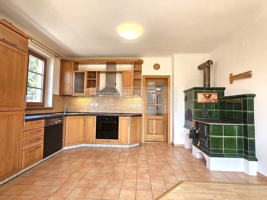 Dům je částečně zařízený nábytkem - jedná se převážně o úložné prostory, stoly a cca 3 postele. Kuchyňská linka zn. Sýkora je vybavena novou indukční varnou deskou, el. troubou, digestoří, myčkou a malou lednicí. V domě byly použity jen kvalitní a drahé materiály - dubové dřevěné podlahy, keramická dlažba, obklady v hlavní koupelně od firmy Villeroy & Boch, skříně, dveře, zárubně a schody jsou výhradně jen z masivu, kvalitní dřevěná eurookna TWW, funkční kachlová kamna v kuchyni z Kamnářství Jan Janoušek, nové osvětlení v obývacím pokoji a kuchyni, nejtišší tepelné čerpadlo na trhu Acond Pro R, centrální vysavač Electrolux, elektronický zabezpečovací systém Rokonet Orbit-Pro apod. Na pozemku je vlastní studna vhodná k zalévání zahrady a závlaha Hunter Pro - C. Kanalizace je obecní. Parkování je možné v prostorné garáži i na pozemku za bránou, která je kovaná, s el. pohony a na dálkové ovládání.