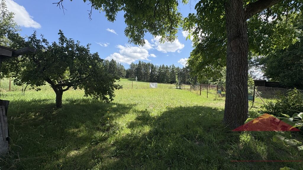 Zahrada: 982 m2; Pěkná, slunná, rovinatá, oplocená, udržovaná a sekaná zahrada s plodícími ovocnými stromy (jabloně, ořech, višeň, švestka) keři (maliny) a vjezdem.