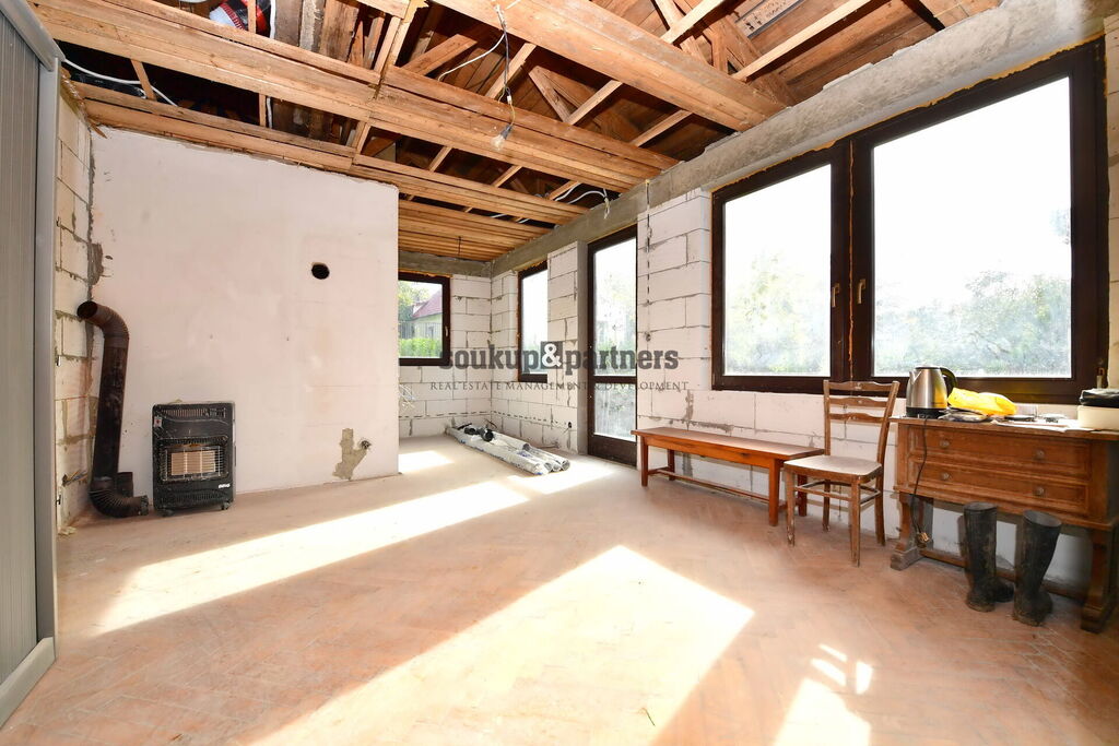 Pozemek 1278 m2 s rozestavěným rodinným domem - 165 m2. Jedná se o velmi krásný a jedinečný pozemek na okraji zástavby v obci Dobrovíz - Jeneč, hned za hranící hlavního města. Pozemek je lehce svažitý, má JZ orientaci a na jeho spodní hranici se nachází křišťálový potok a lesík. Pozemek je situovaný na konci zástavby s dostatkem soukromí, sousedící pouze s jedním domem. Na pozemku se nachází ovocné stromy, vysázený bambus a záhony. Půda je zde velmi úrodná. Na pozemku se dále nachází hrubá stavba dvou podlažního domu. 1NP je vystavěno ze škvárobetonových tvárnic v 90. letech. 2 NP se stavělo znovu před pár lety kompletně z Ytongu. V patře se zachovaly dubové parkety na podlaze k revitalizaci. Okna jsou dřevěná Eurookna dvojskla. Veškeré odpady jsou nově v plastovém vedení a elektřina je kompletně nová v měděném vedení. V roce 2024 se pokládala nová střešní krytina - plech Satjam. V rámci zastavitelnosti pozemku, lze stavbu téměř dvojnásobně rozšířit. Dům disponuje plynovou přípojkou a dále je napojen na vlastní studnu a odpad je sveden do vlastní jímky. Je vybudovaná příprava na připojení vodovodu a kanalizace a je možno se okamžitě připojit. V domě je dvou komorový komín. V obci je částečná občanská vybavenost - obchod s potravinami, restaurace apod. Veškerá občanská vybavenost 10 min. autem v OC Šestka nebo OC Metropole Zličín. Výborná dopravní dostupnost - 5 min. autem dálnice D6 - 10 min. Metro B, zast. Zličín. BUS 306 je 5 min. chůzí od domu. Pro více informací volejte manažera nabídky.