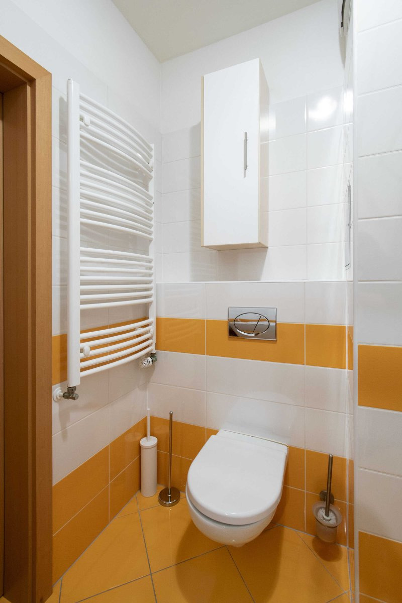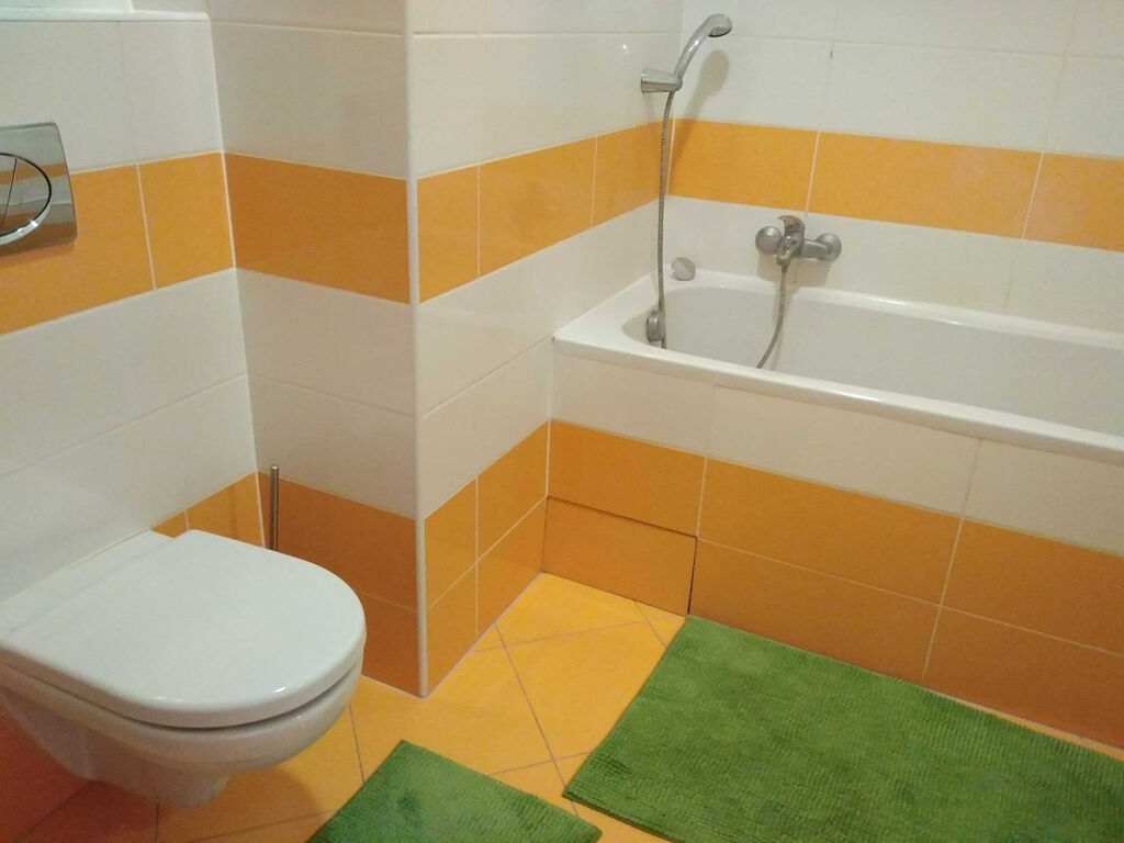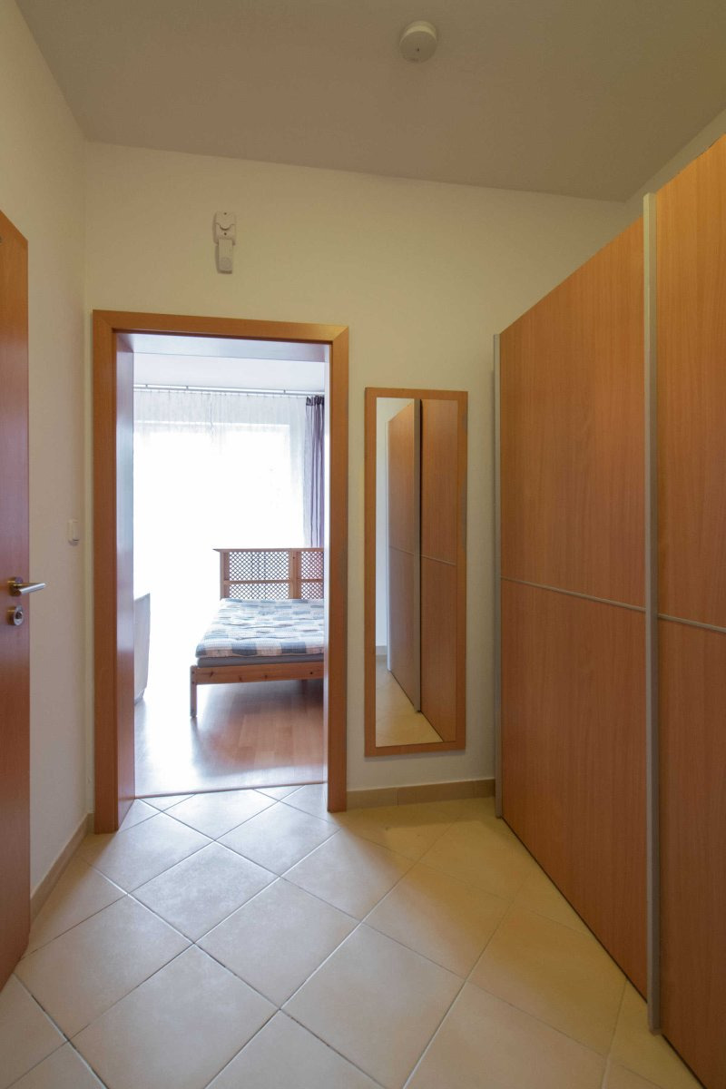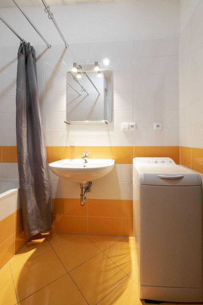 Světlý byt je moderně zařízen včetně veškerých spotřebičů jako je myčka, lednice a pračka. V koupelně je vana s umyvadlem a WC.
