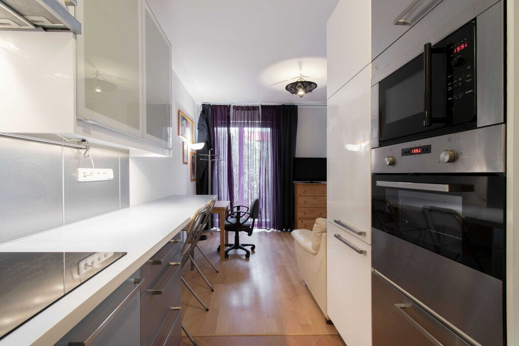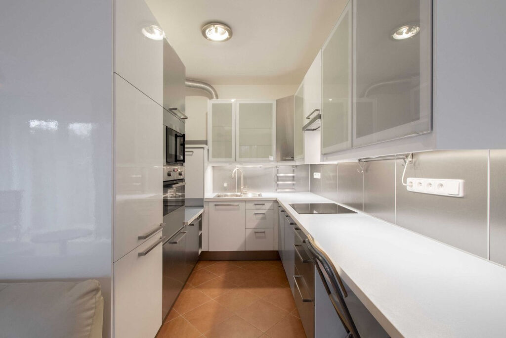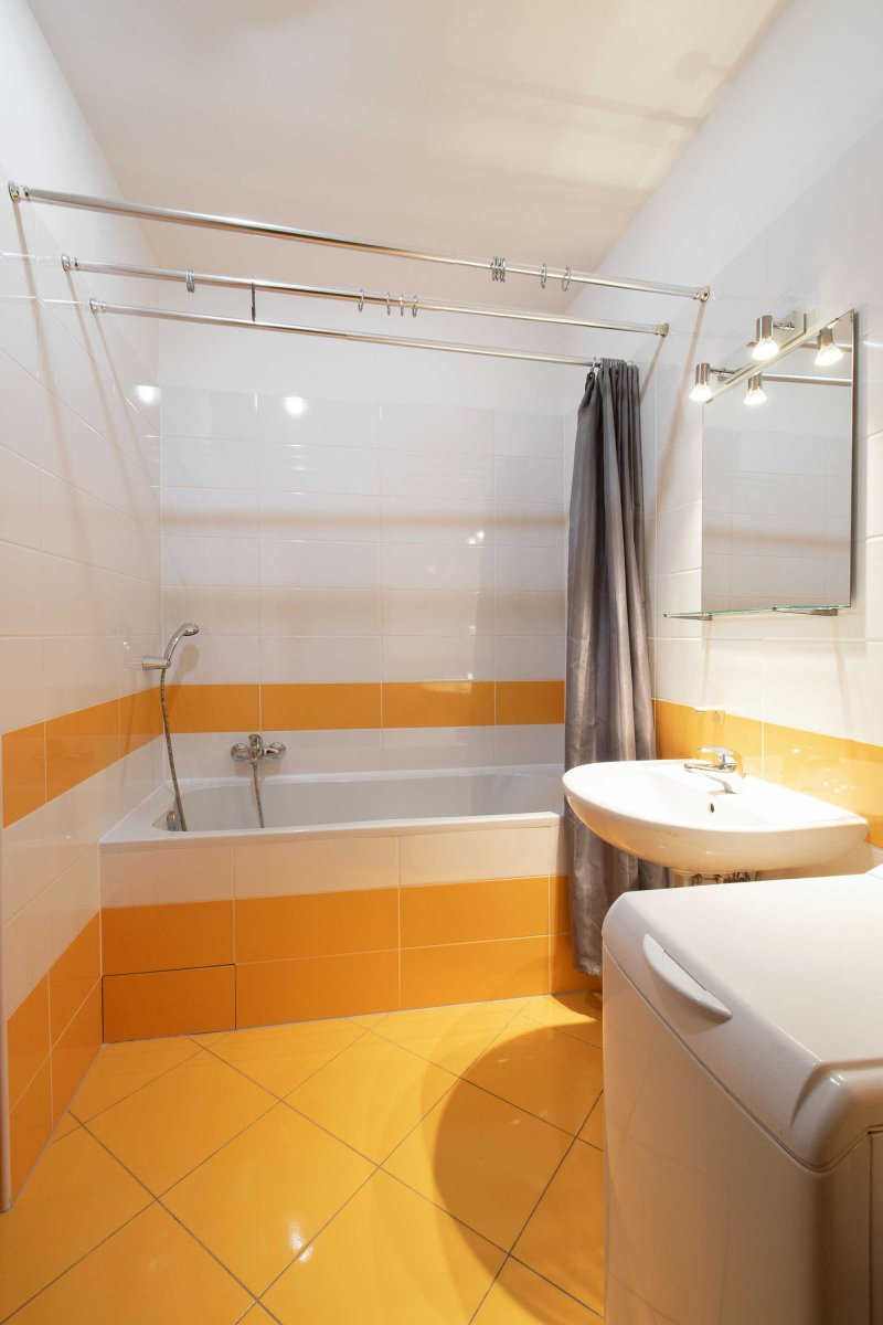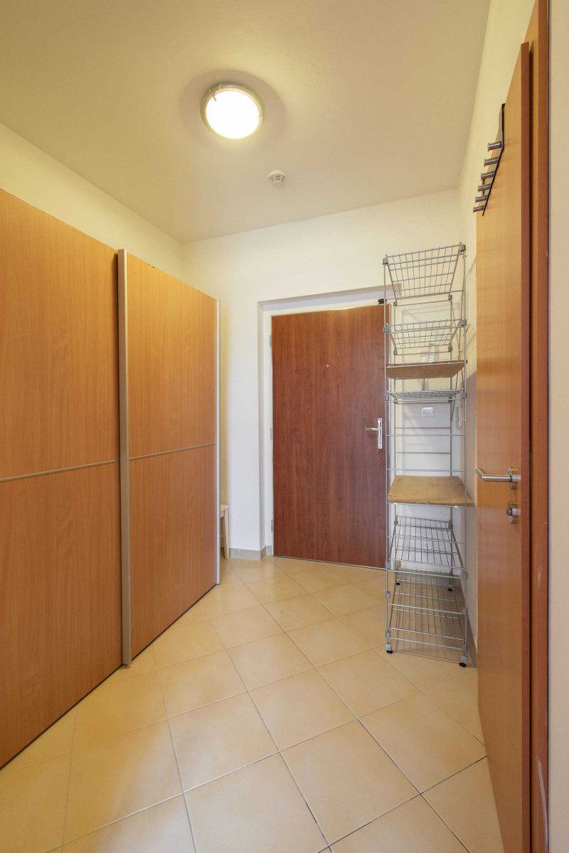 Světlý byt je moderně zařízen včetně veškerých spotřebičů jako je myčka, lednice a pračka. V koupelně je vana s umyvadlem a WC.