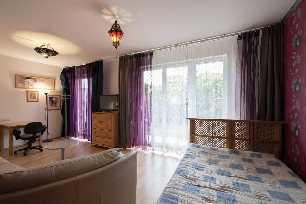 Nabízíme k podnájmu kompletně vybavený byt 1+kk, 40 m2 s předzahrádkou, terasou a parkovacím stáním v ulici Penízovková, Praha-Pitkovice, v klidné části Prahy.