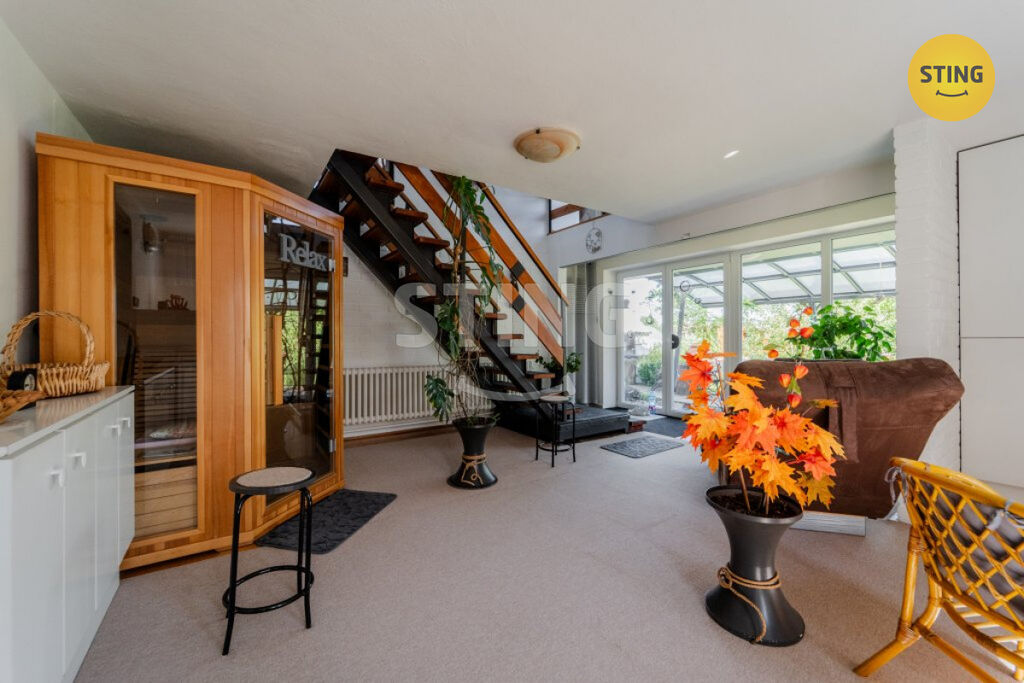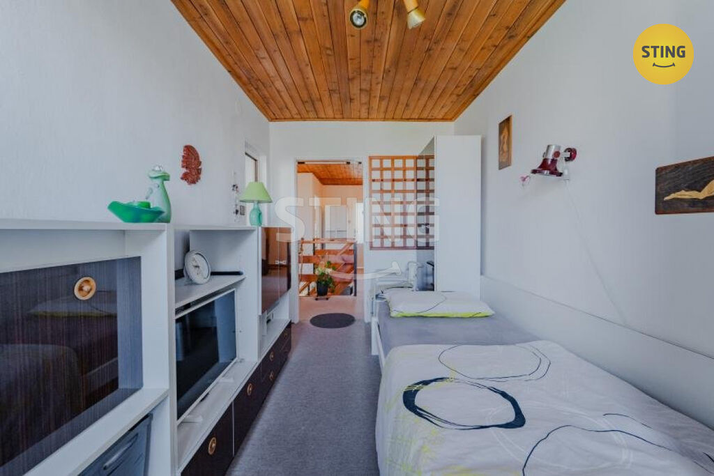 v exkluzivním zastoupení majitele si Vám dovoluji nabídnout ke koupi krásný rodinný dům s opravdu malebnou a udržovanou zahradou. Dům má vyměněna všechna okna za moderní plastová, dispozice domu je jednogenerační 5+1, v suterénu domu se nachází jeden pokoj, včetně jedné průchozí místnosti se saunou, technická místnost s garáží, dům je částečně podsklepen. V patře domu se nachází Obývací místnost s kuchyní, koupelna, záchod, 2 ložnice. Ze suterénní místnosti se saunou se dá krásně vyjít na terasu zahrady portálovým oknem. Z terasy pak vidíme do celé zahrady, kde se nachází soubor různých ovocných stromů, všechny stromy jsou zdravé a plodné. Na konci zahrady se nachází další posezení s pergolou a zahradním domkem. V ceně prodeje je zahrnuto vybavení zahrady vč. částečného vybavení domu. V případě zájmu o prohlídku domu volejte. Do konce října 2025 nabízíme prostřednictvím našeho partnera úrokové sazby od 4,29 % p.a. Více informací Vám sdělí náš specialista na prohlídce.