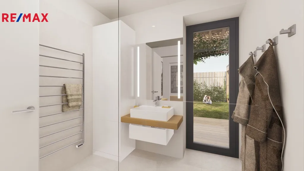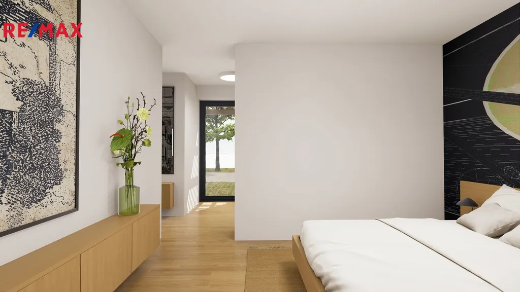 Jednopodlažní dům s obytným podkrovím o celkové užitné ploše 134,4 m² a dispozicí 5+kk je situovaný na rovinatém terénu. Dům se prodává postavený "na klíč". To zahrnuje základovou desku, hydroizolaci a tepelnou izolaci, stavbu z keramických pálených cihel o minimální tloušťce zdiva 440 mm včetně překladů a věnce, kompletní zastřešení pálenou keramickou taškou, klempířské prvky, hliníkové okenní rámy s trojsklem, dále oplocení, pergolu, finální fasádu, bílou omítkovinu a kompletní dřevěné prvky. Pro další informace ohledně standardů kontaktujte makléře nabídky. Vnitřní uspořádání je navrženo tak, aby charakter navrženého domu maximalizoval možnosti využití celého pozemku.