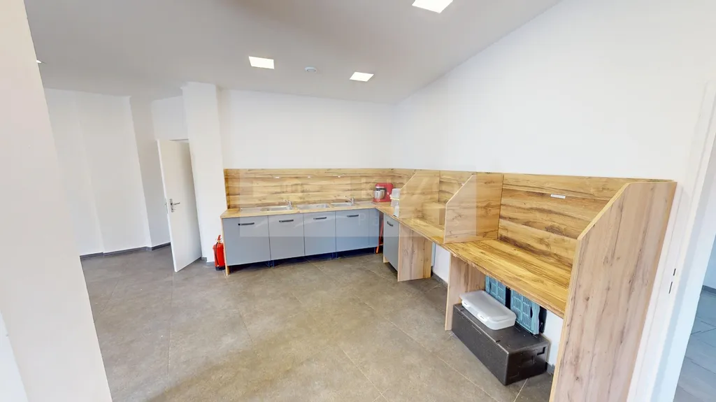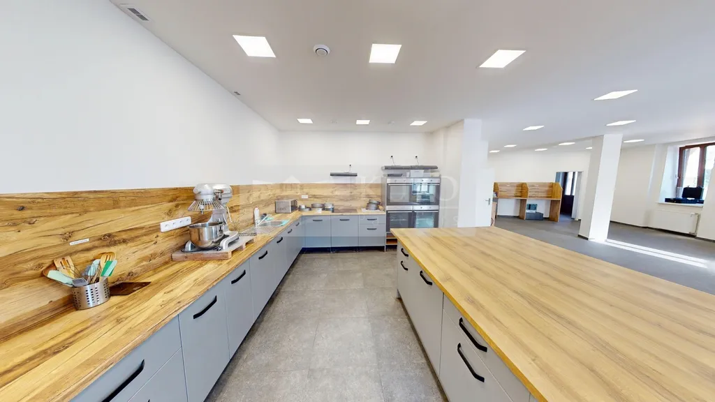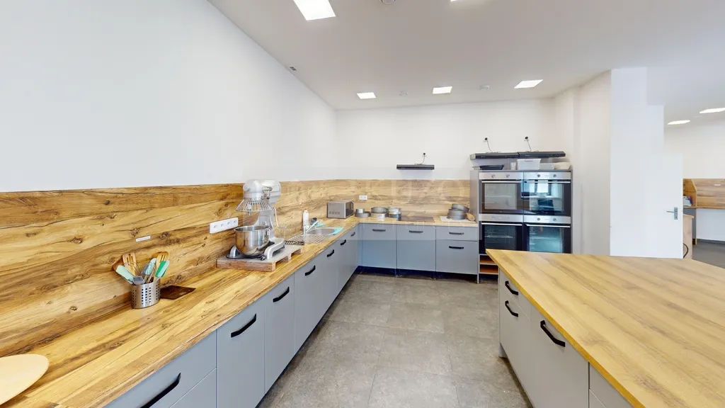 Multifunkční prostor s kolaudací: Prostor je zkolaudován jako výroba cukrařina a pekařina s možností rozšíření o lahůdky a teplou kuchyni. Je zde také příprava pro obchodní část (tzv. take away). Můžete zde vytvořit prodejnu s pekárnou, cukrárnou, nebo rychlé občerstvení (pizzerie, kebab, čína a další).