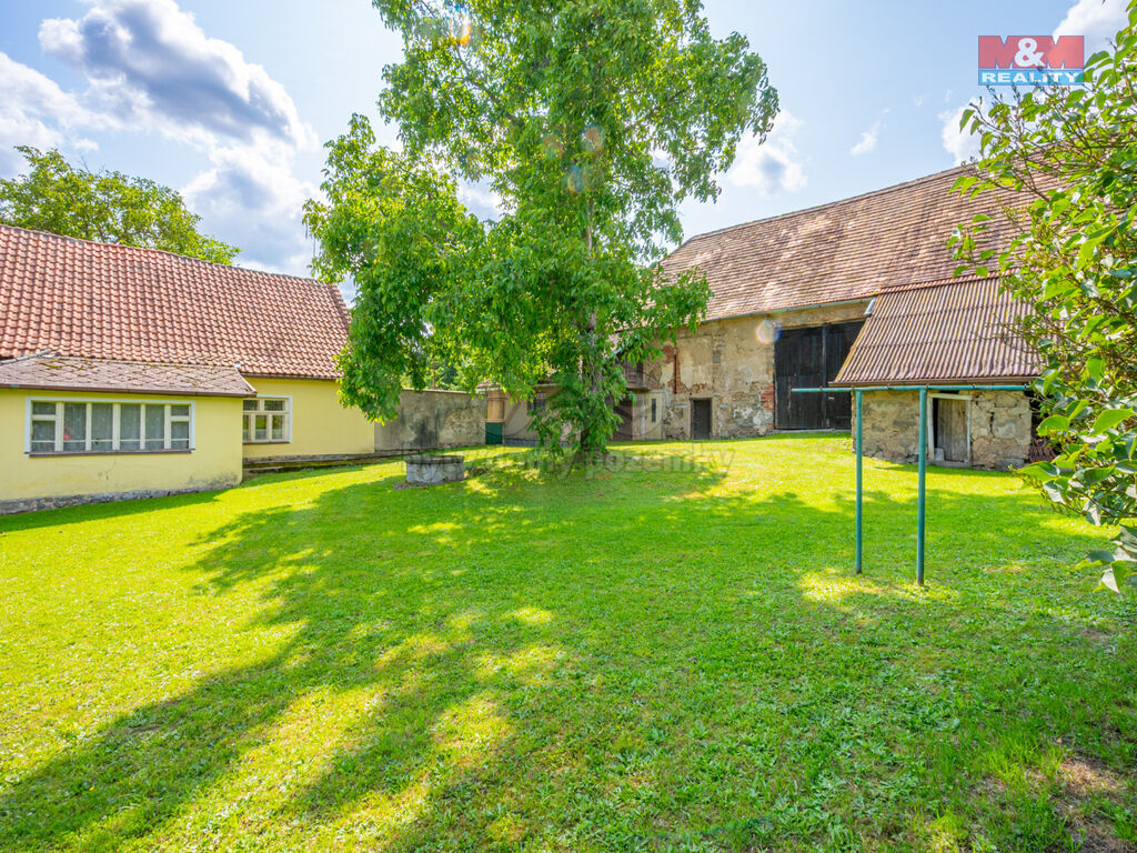Usedlost byla postavena koncem 19. století a skládá se z obytné části velké 81 m², která je rozdělená do tří místností, dále kůlny, chlévů, které na obytnou část navazují a v budoucnu by bylo možné obytnou část o tyto prostory případně rozšířit a půdní prostor. Na pozemku též nalezneme velkou stodolu, garáž a sklepy. Tyto budovy a taras oddělující sousedy tvoří zahradu. Brankou se dostaneme na zahradu za domem, kde nalezneme množství ovocných stromů, rybník a část lesa. Dům je napojen na elektřinu, jako zdroj vody slouží kopaná studna. Doporučuji prohlídku. Více informací Vám ráda sdělím po telefonu.