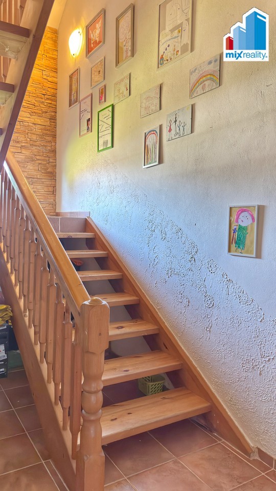 V přízemí domu se nachází technická místnost, koupelna s toaletou, pracovna, pokoj aktuálně využívaný jako tělocvična, jídelna, kuchyně, prostorný obývací pokoj a knihovna. V prvním patře najdete ložnici, dvě velké obytné místnosti, šatnu a prostornou koupelnu s toaletou, která má potenciál pro vybudování sauny. Obě koupelny jsou před rekonstrukcí, což novému majiteli umožní dokončení přesně podle vlastních představ.