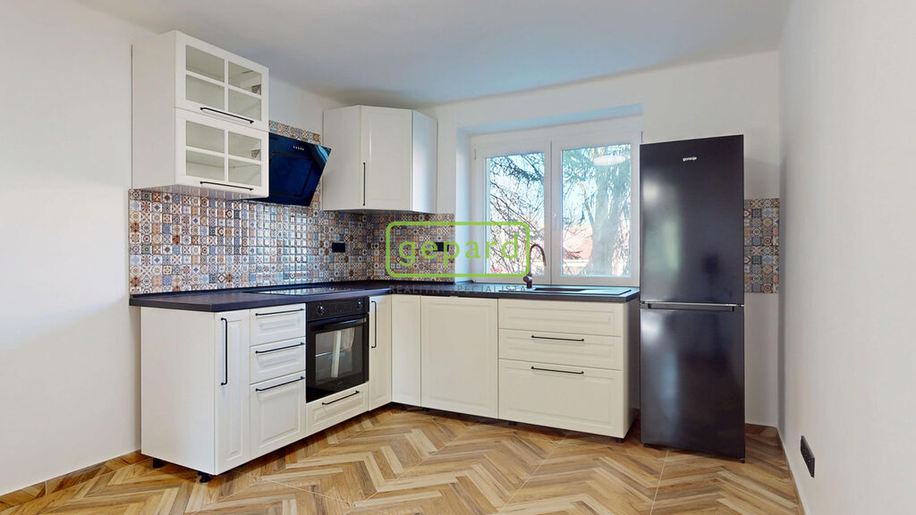 Rekonstrukce proběhla tento rok a zahrnuje mimo jiné novou kuchyňskou linku, spotřebiče včetně ledničky s mrazákem. Zcela nová koupelna s luxusním nádechem, který Vás neomrzí a připraveno místo na pračku či případně i sušičku (nad sebe, 60 x 60 cm - není součástí vybavení). V obývacím pokoji je zcela nový gauč. Velikou výhodou je též podlahové topení v celém bytě na elektřinu.