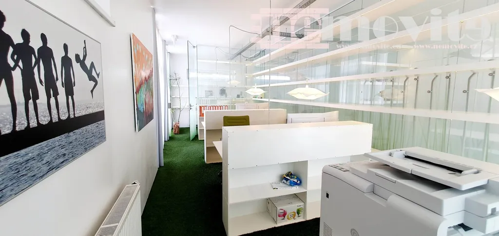 Exkluzivně nabízíme na prodej kompletně vybavenou luxusní kancelář - Jesenice, Praha západ, včetně jednoho parkovacího místa v garážích pod domem, možnost okamžitého používání. Přízemní elektronicky zabezpečená bezbariérová kancelář je vybavena kuchyňkou, jídelním stolem se židlemi, konferenčním stolem se židlemi, jedno oddělené manažerské místo a dvě místa pro pracovníky, 2x klimatizace, myčka, datový projektor s plátnem, lednice, mikrovlnka, toaleta, cena je včetně kompletního vybavení. Bezproblémové parkování u domu v ulici. Vážným zájemcům doporučujeme prohlídku.