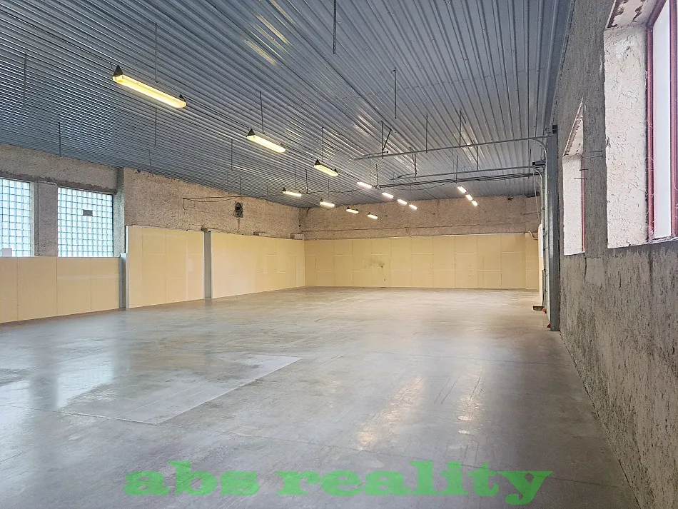 Hala o užitné ploše 419m2 (27 x 15,5m), výška stropu 520 cm, podlahy bezprašné, el. 230/400V (podružný elektroměr), internet, osvětlení, mříže, výsuvná vrata. Tento prostor je bezbariérový, což zajišťuje snadnou manipulaci s většími předměty.