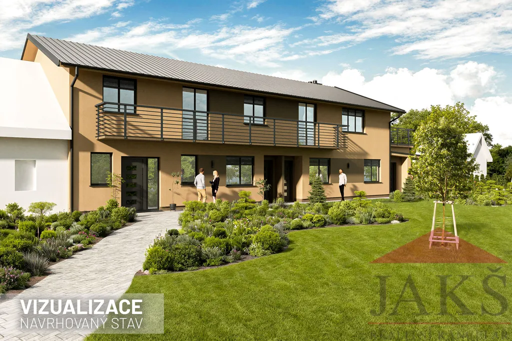 Apartmán/byt č. 6 o dispozici 1+kk s balkonem, skladem a parkovacím místem na oploceném pozemku s komunitní zahradou.