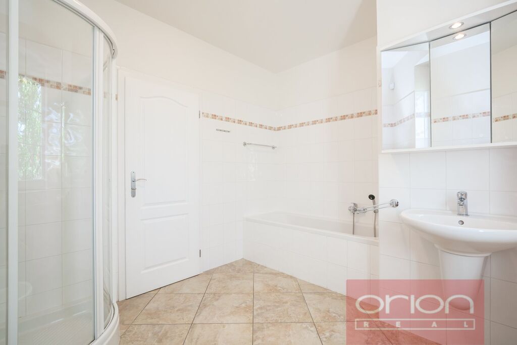 Nabízíme k pronájmu rodinný dům 6+1 s užitnou plochou 300 m² a udržovanou zahradou o velikosti 1000 m² v Průhonicích v klidném prostředí zástavby nových rodinných domů v blízkosti centra obce a východního vstupu do Průhonického parku. Dům je postaven v moderním stylu a nabízí v přízemí vstupní chodbu s vestavěnou skříní, prostorný obývací pokoj s krbem spojený s plně zařízenou kuchyní s jídelním koutem (kuchyňská linka, myčka nádobí, kombinovaný sporák, odsavač par, lednice s mrazákem), 1 pokoj pro hosty, 1 koupelnu se sprchovým koutem a toaletou. V horním patře jsou 4 ložnice, 1 koupelna s vanou a sprchou a samostatná toaleta. V suterénu je hobby místnost, prádelna, technická místnost. Garáž pro 2 auta. K vybavení domu patří plynové vytápění, satelit, alarm, telefonní linka, na podlahách jsou dřevěné parkety a plovoucí podlahy a dlažba. Hlavní výhodou této lokality je snadná dostupnost do centra města a pohodlné bydlení vhodné zejména pro rodiny s dětmi. V blízkosti je nájezd na dálnici D1 směr Praha/Brno, dobrá dostupnost autem nebo autobusem do mezinárodních škol. Průhonice patří k velmi oblíbeným a vyhledávaným lokalitám s mnoha restauracemi, kavárnami a obchody a nedalekým obchodním centrem Čestlice s aqaparkem. Fotografie jsou ilustrativní.