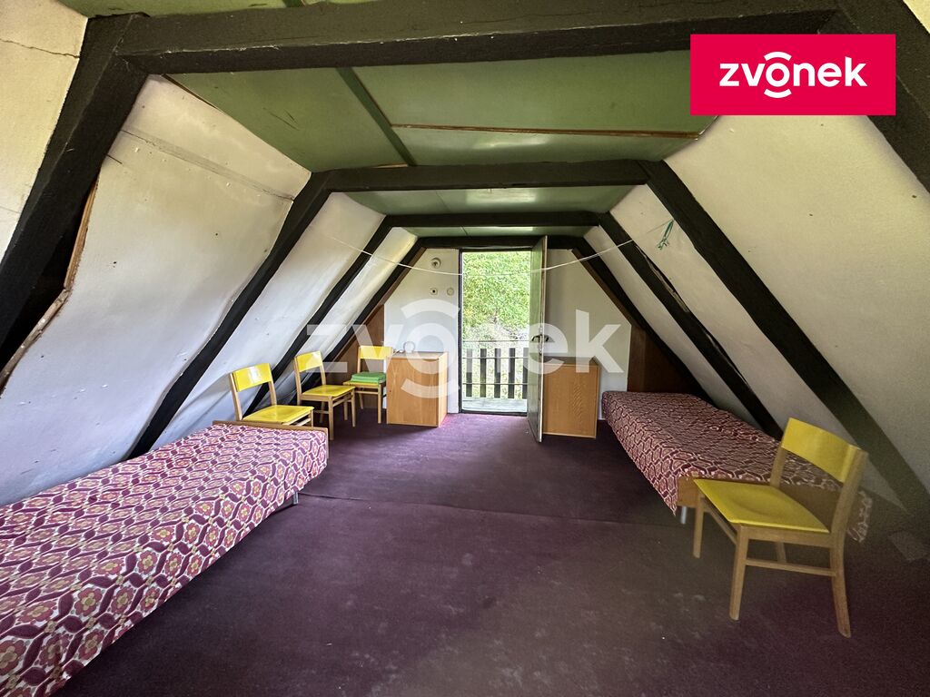 • Podkroví – prostorný pokoj s dalším balkonem a výhledem, který vás prostě dostane. Přístup sem vede venkovními schůdky z boku chaty.