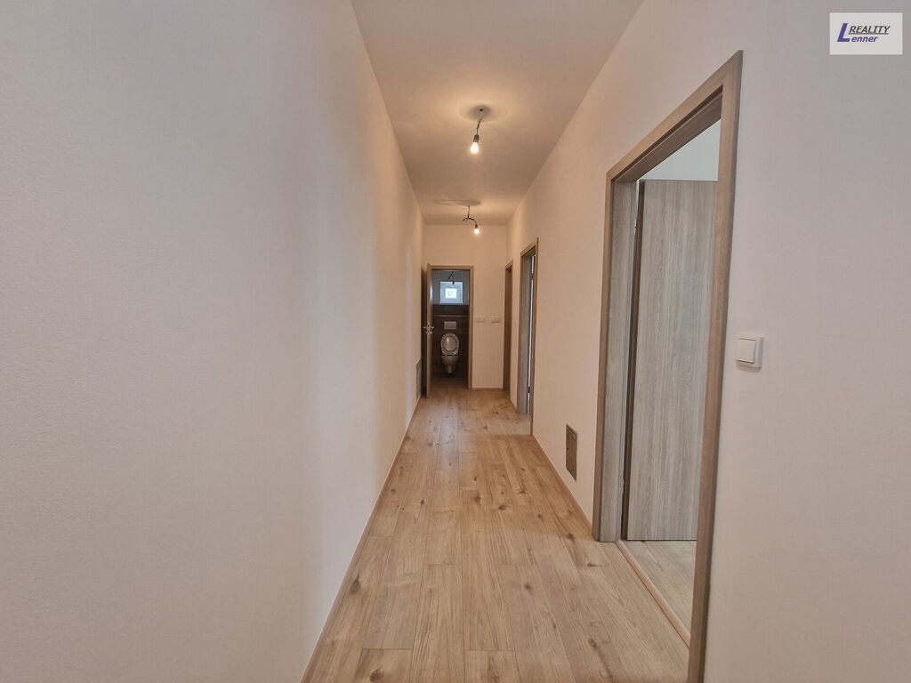 V bytě je vše nové: el. v mědi vč. nových jističů, voda a odpady v plastu, kvalitní podlahy (plovoucí laminátové), int. dveře vč. zárubní vč. vchodových, plastová ona, podlahové topení, atd.