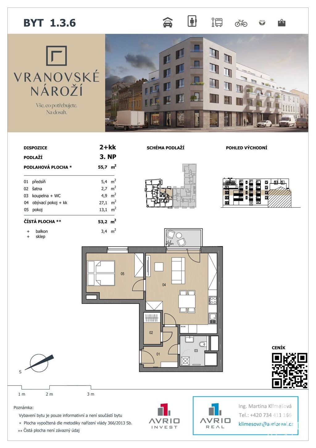 Představujeme Vám byt o dispozici 2+kk a výměře 53,1 m2 v projektu Vranovské nároží.